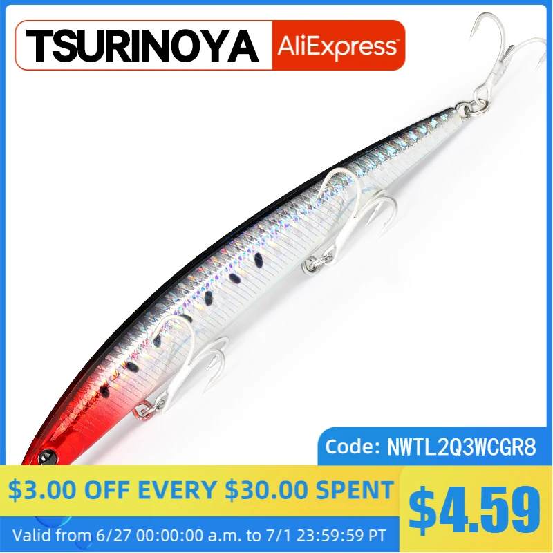 Señuelo flotante de pesca TSURINOYA 125F Ultra largo de fundición Minnow DW72 125mm 14,3g 10-60cm cebos duros de agua salada de rango bajo