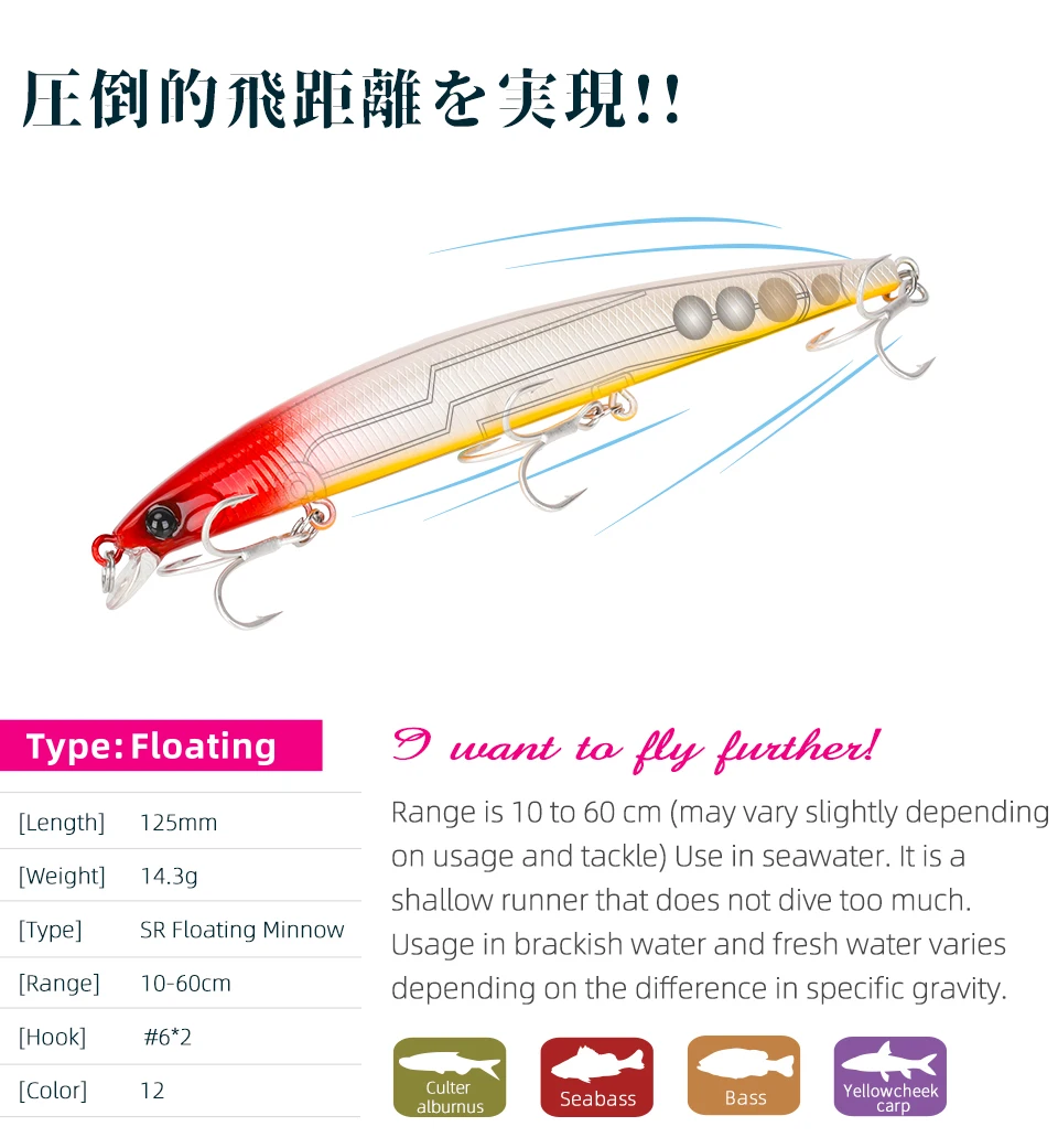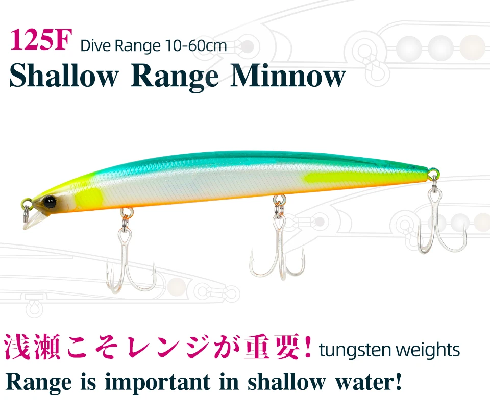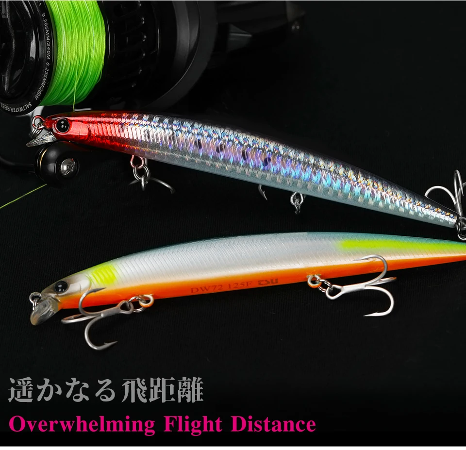TSURINOYA 125F 125mm 14.3g señuelo flotante para pesca en el mar MInnow rango de buceo 10-60cm cebo de acero de tungsteno de fundición larga de rango poco profundo