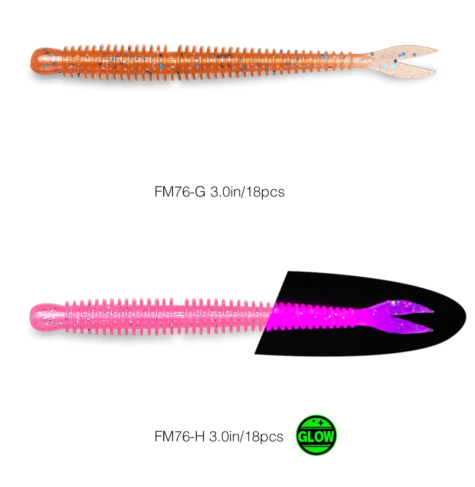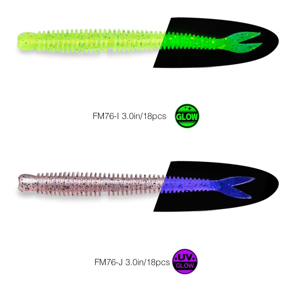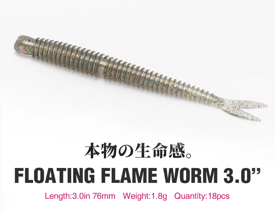 Cebo blando flotante TSURINOYA señuelo de pesca llama 3.0in 1,8g 18pcs gusano de silicona Lucio luz juego aparejo de pesca Swimbait