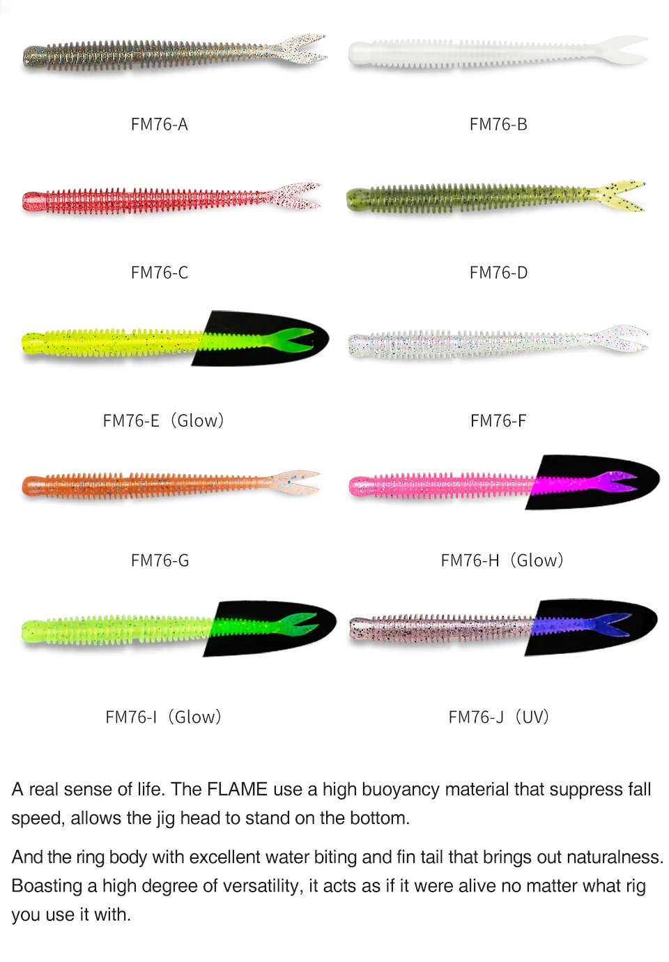 La llama utiliza un material de alta flotabilidad que inhibe la velocidad de caída, permite que la cabeza de la plantilla se coloque en la parte inferior. Y el cuerpo del anillo con excelente mordedura de agua y cola de aleta que resalta la naturaleza. Con un alto grado de versatilidad, funciona como si fuera vivo sin importar la plataforma con la que lo use.