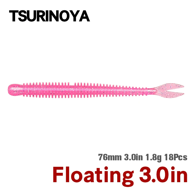 Cebo blando flotante TSURINOYA señuelo de pesca llama 3.0in 1,8g 18pcs gusano de silicona Lucio luz juego aparejo de pesca Swimbait
