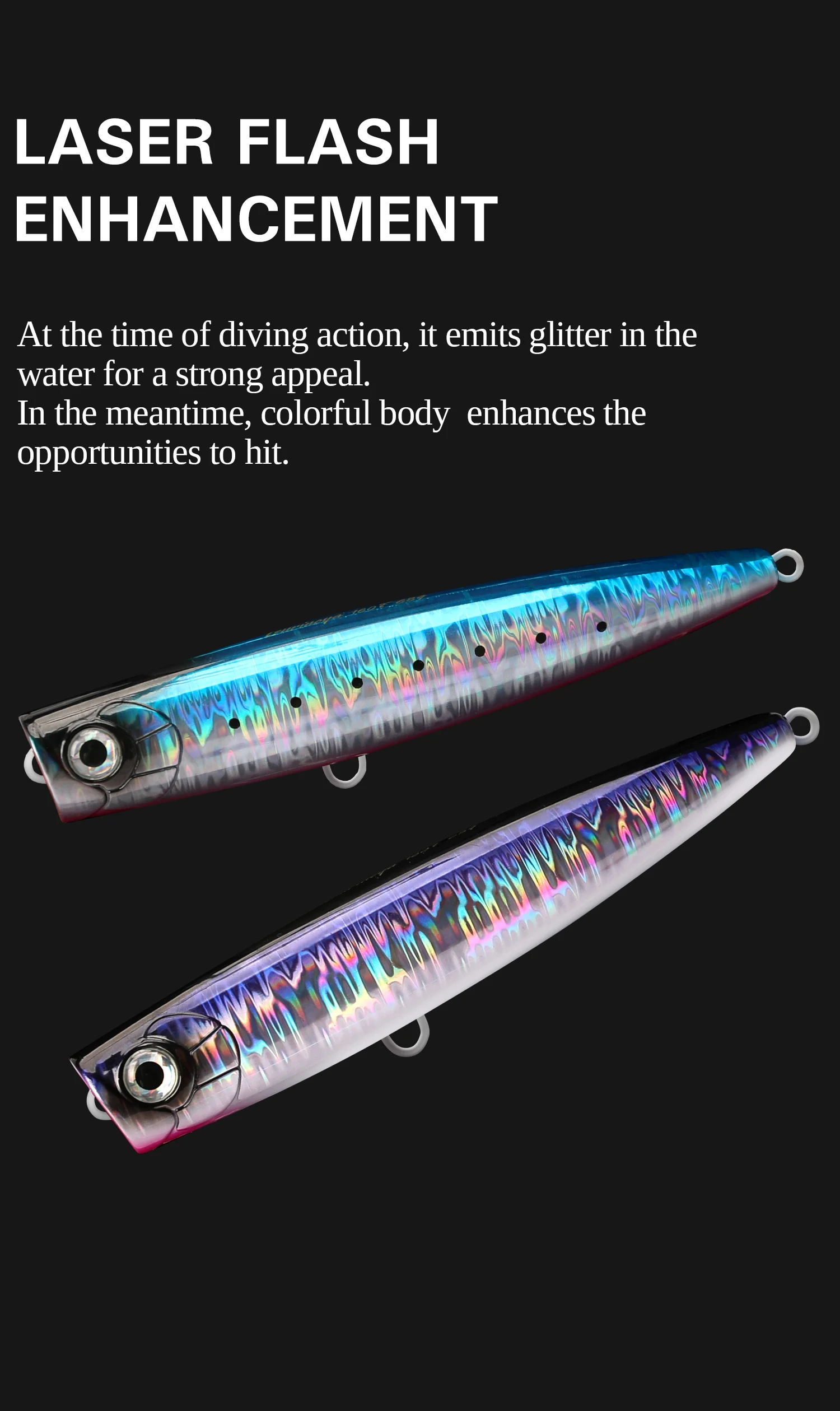 Señuelos de Pesca en el mar, cebos de lápiz flotantes, 160mm, 45g, cebo Artificial duro flotante, hoja de Flash, lápiz de agua superior, señuelo de pesca