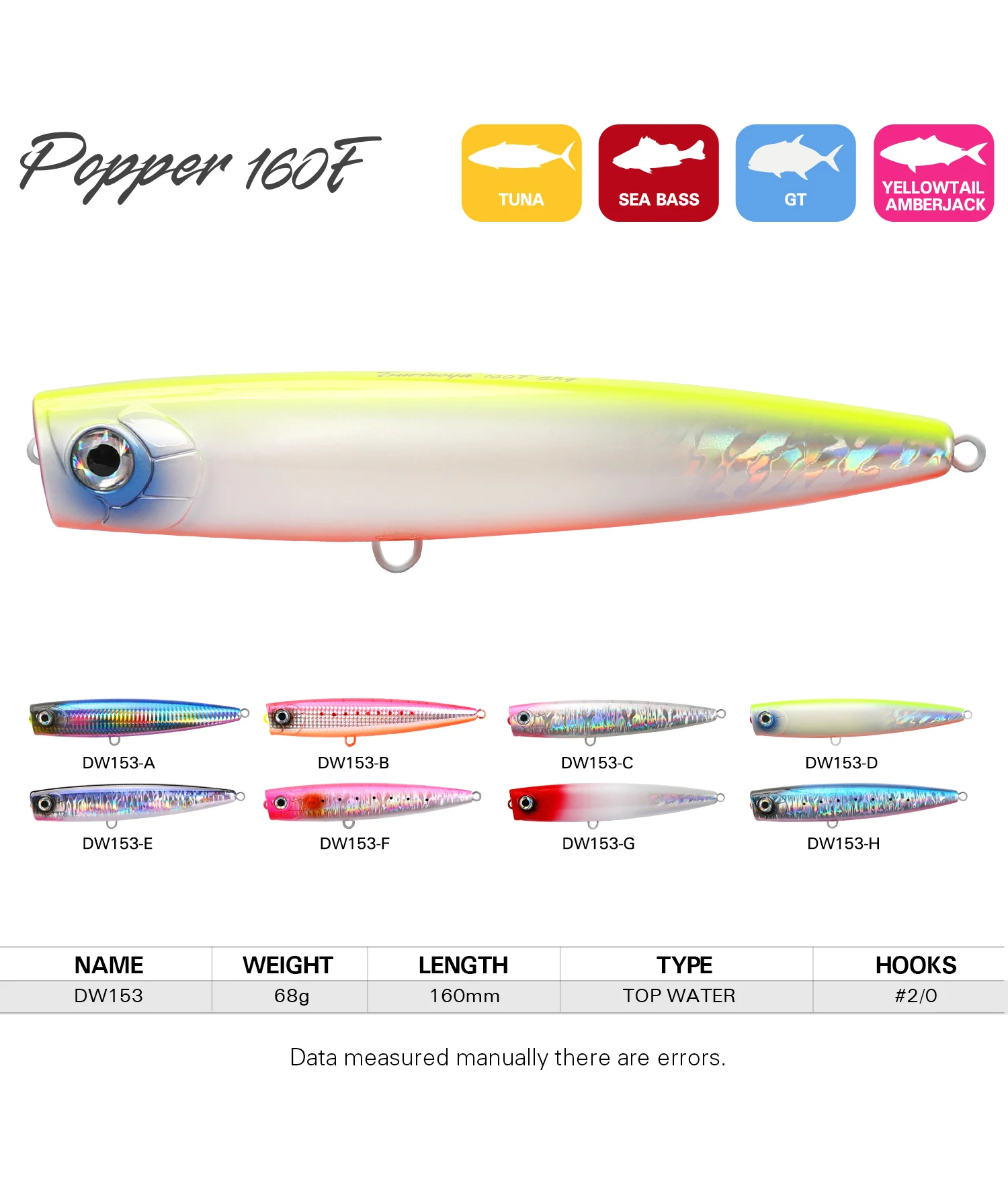 TSURINOYA-señuelo de pesca flotante Wobbler 160F Topwater, 160mm, 6,3 ", 68g, cebo Artificial Popper para GT, atún, océano, cebo duro falso