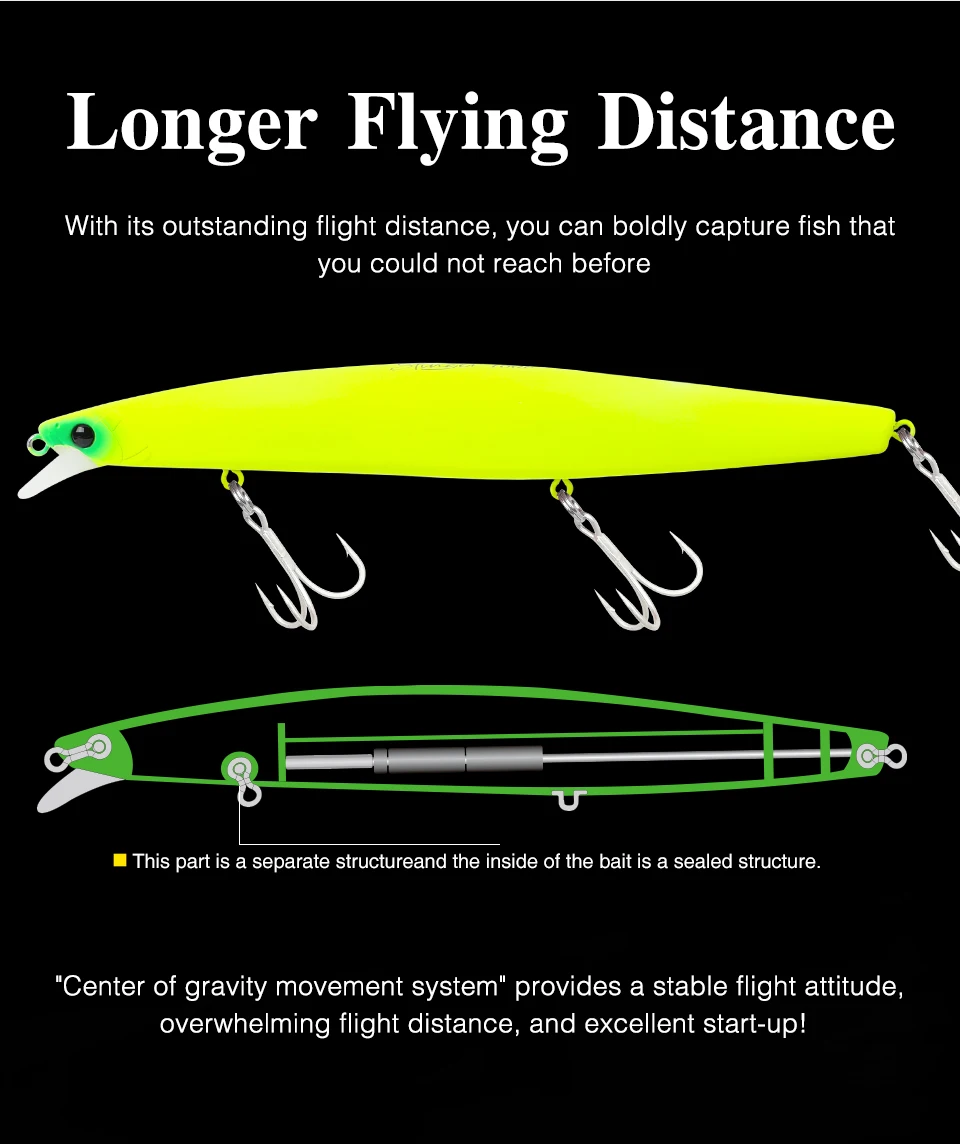 TSURINOYA-señuelo de pesca de fundición ultralarga 160F, Minnow pececillo flotante, STINGER DW110, 163mm, 31g, cebo duro para pesca de mar, cebos de lubina artificial duro triple anzuelo babero señuelos para Lubina