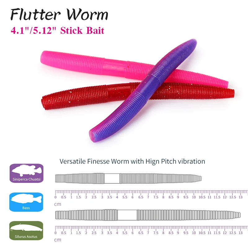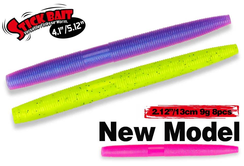 TSURINOYA 4.13in 5.12in 7,5g 9g Stick cebos de gusano señuelo de pesca 8pcs cebo Artificial, Silionce bajo Pike no el anzuelo de pesca plataforma