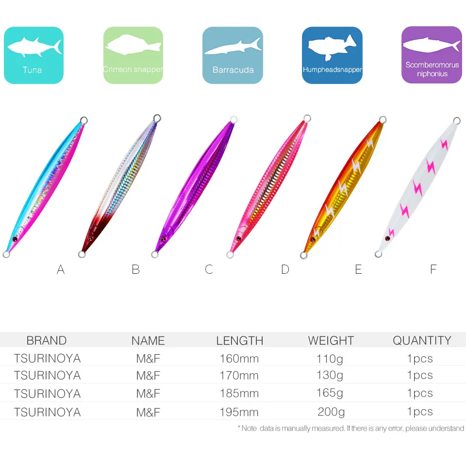 TSURINOYA-señuelo de pesca de Jigging lento GT Tuna, M & F 110g 130g 165g 200g, anzuelo de Metal duro Biat