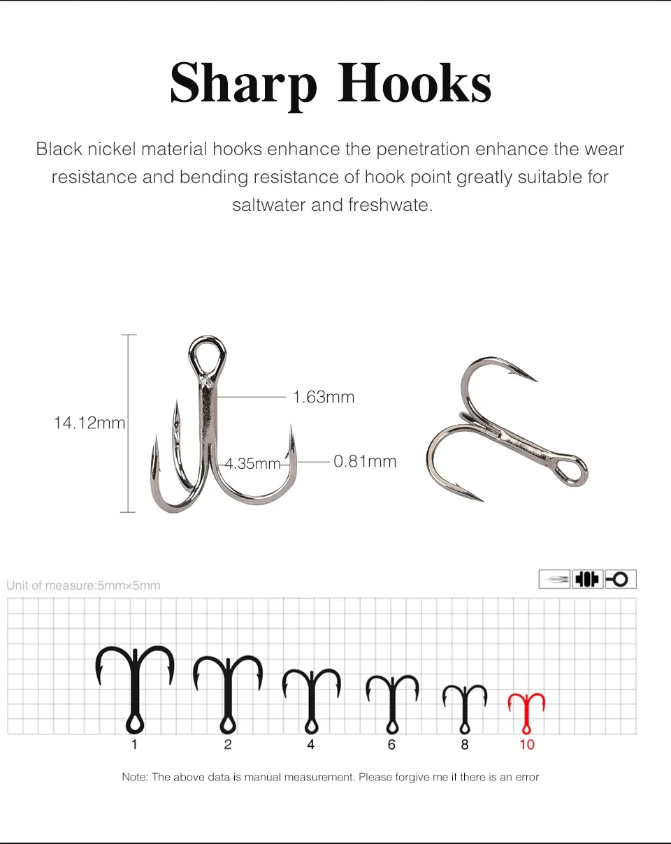 6. Los ganchos afilados de material de níquel negro mejoran la penetración