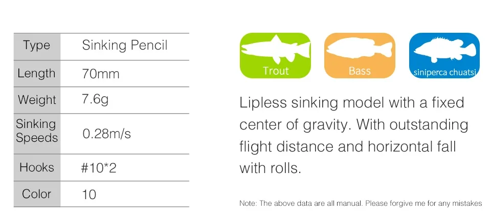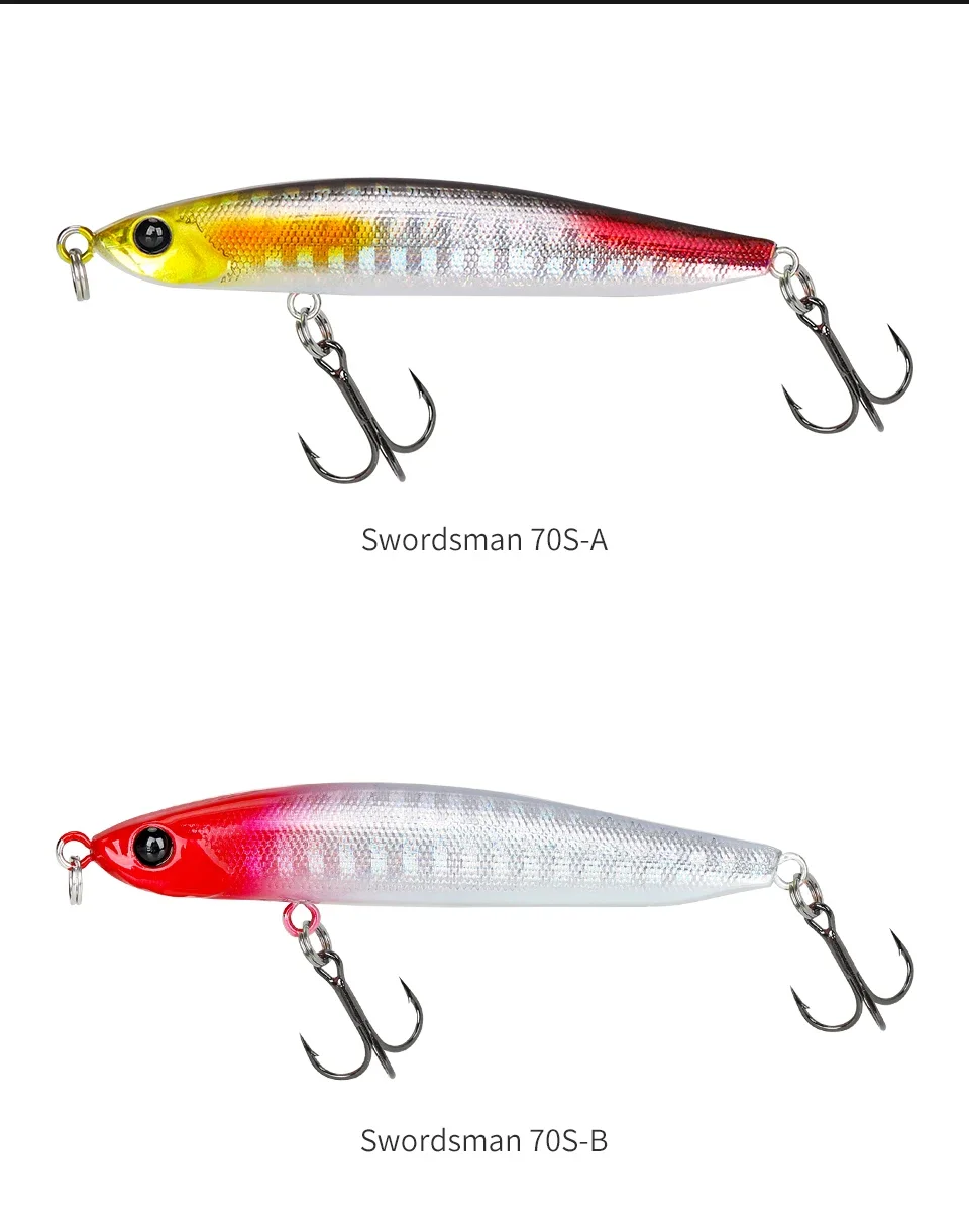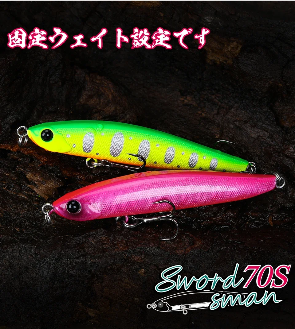 TSURINOYA 70mm 7,6G 70S lápiz de hundimiento sin labios señuelo de pesca espadachín fundición larga trucha sin labios cebos duros MODELO DE CORRIENTE