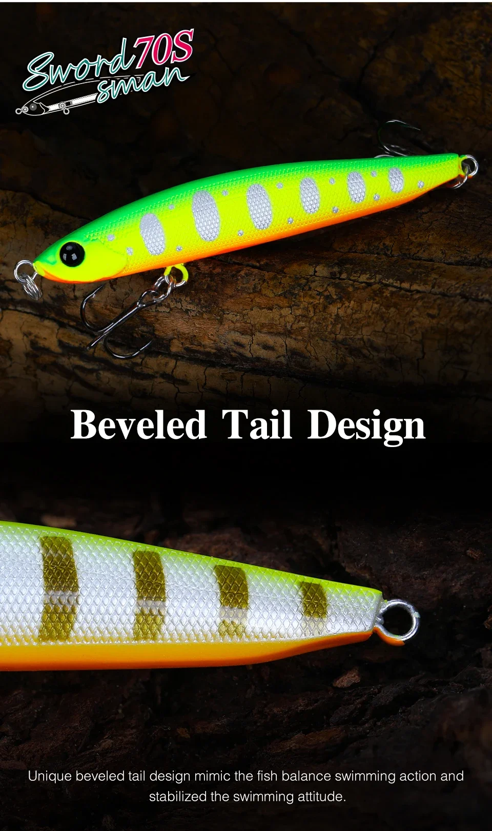 5. El diseño único de la cola biselada imita la acción de natación de equilibrio de los peces y estabiliza la actitud de natación.