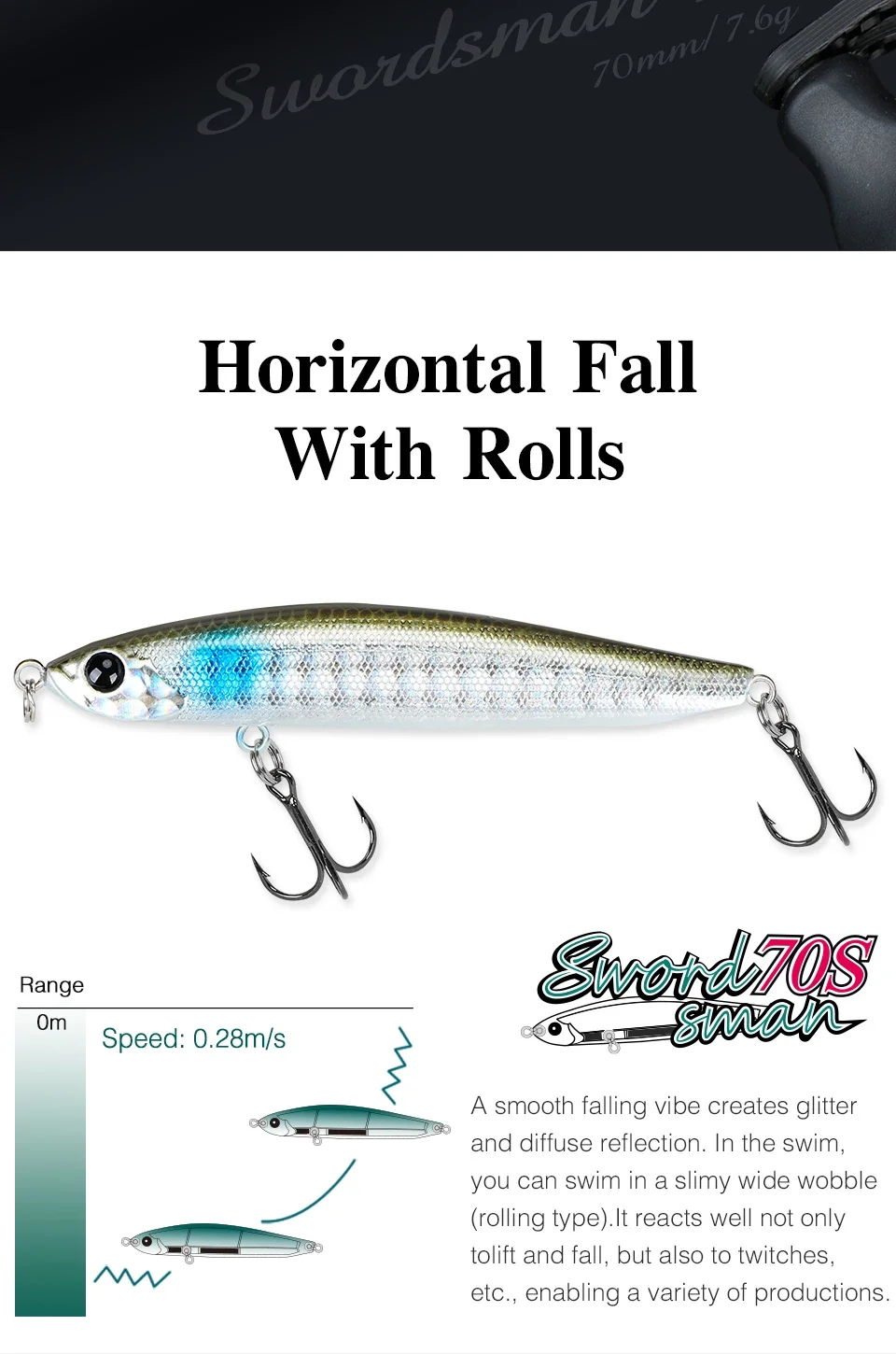 Swordsman 70S, modelo de hundimiento sin labios con centro de gravedad fijo. Con una distancia de vuelo excepcional y caída horizontal con rollos