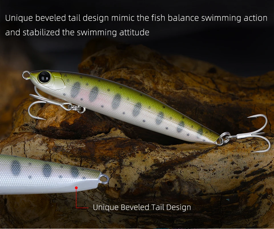3. Unique beveled tail design mimic the fish balance swimming action and stabilized the swimming attitude