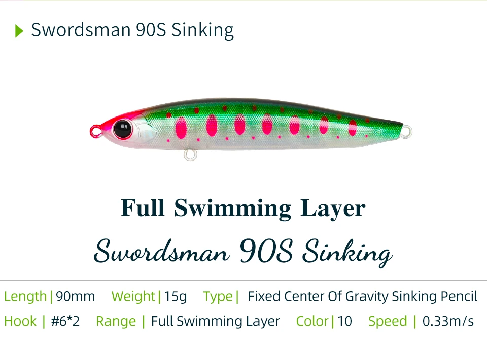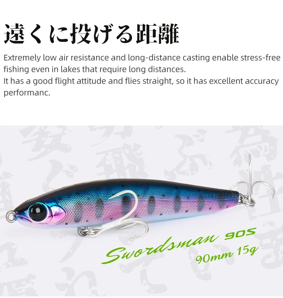 TSURINOYA 90S Sinking Pencil Fishing Lure 90mm 15g SWORDSMAN Long Casting Pike Bass Trout Jerkbait Artificial lipless Hard Baits