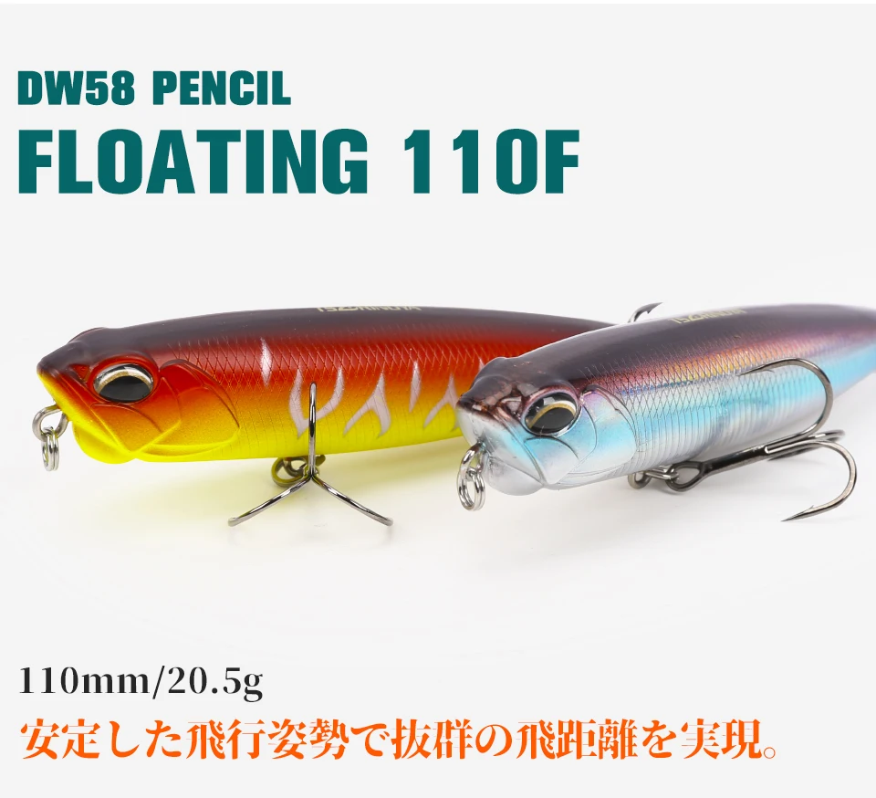 TSURINOYA 110F Topwater Lápiz Señuelo de Pesca DW58 110mm 20,5g cebos duros flotantes artificiales Lucio Bass Stickbait