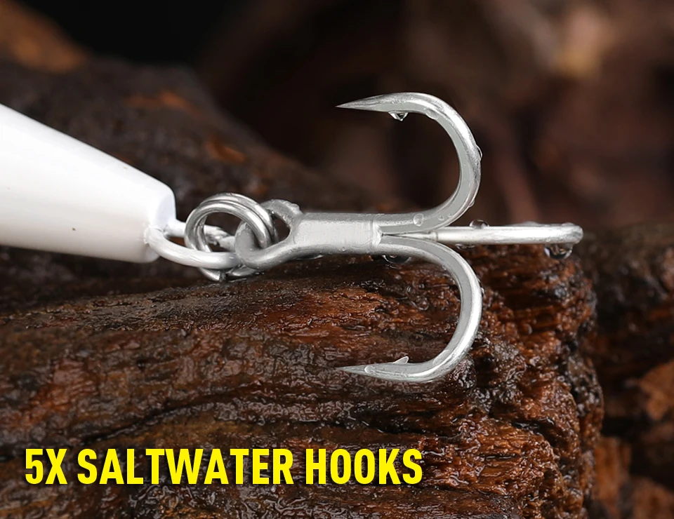 Adoptando un alambre penetrante y 5X anzuelos de agua salada, es un diseño seguro y de alta resistencia que puede manejar con seguridad peleas de peces grandes por ajuste.