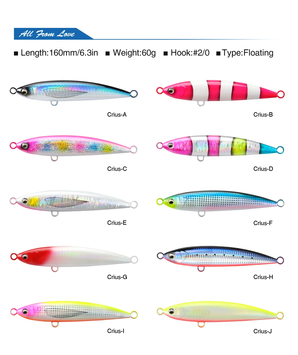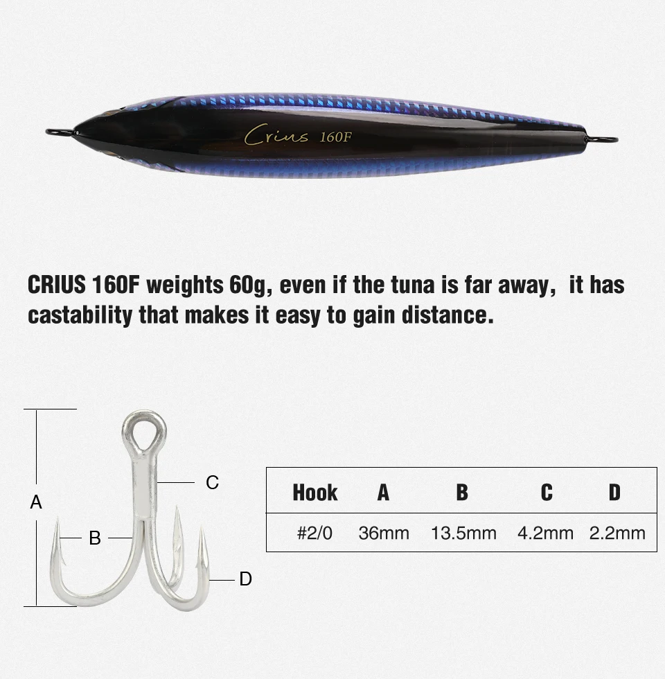 CRIUS 160F pesa 60g, incluso si el atún está lejos, tiene una casabilidad que hace que sea fácil ganar distancia