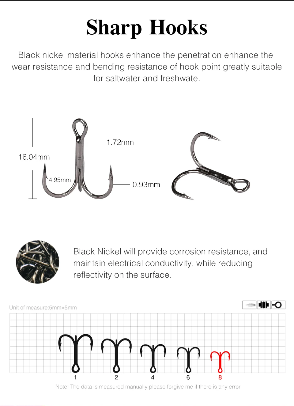 6. Los ganchos de material de níquel negro mejoran la penetración potenciador de la resistencia al desgaste y a la flexión del punto de gancho muy adecuado para agua salada y agua dulce