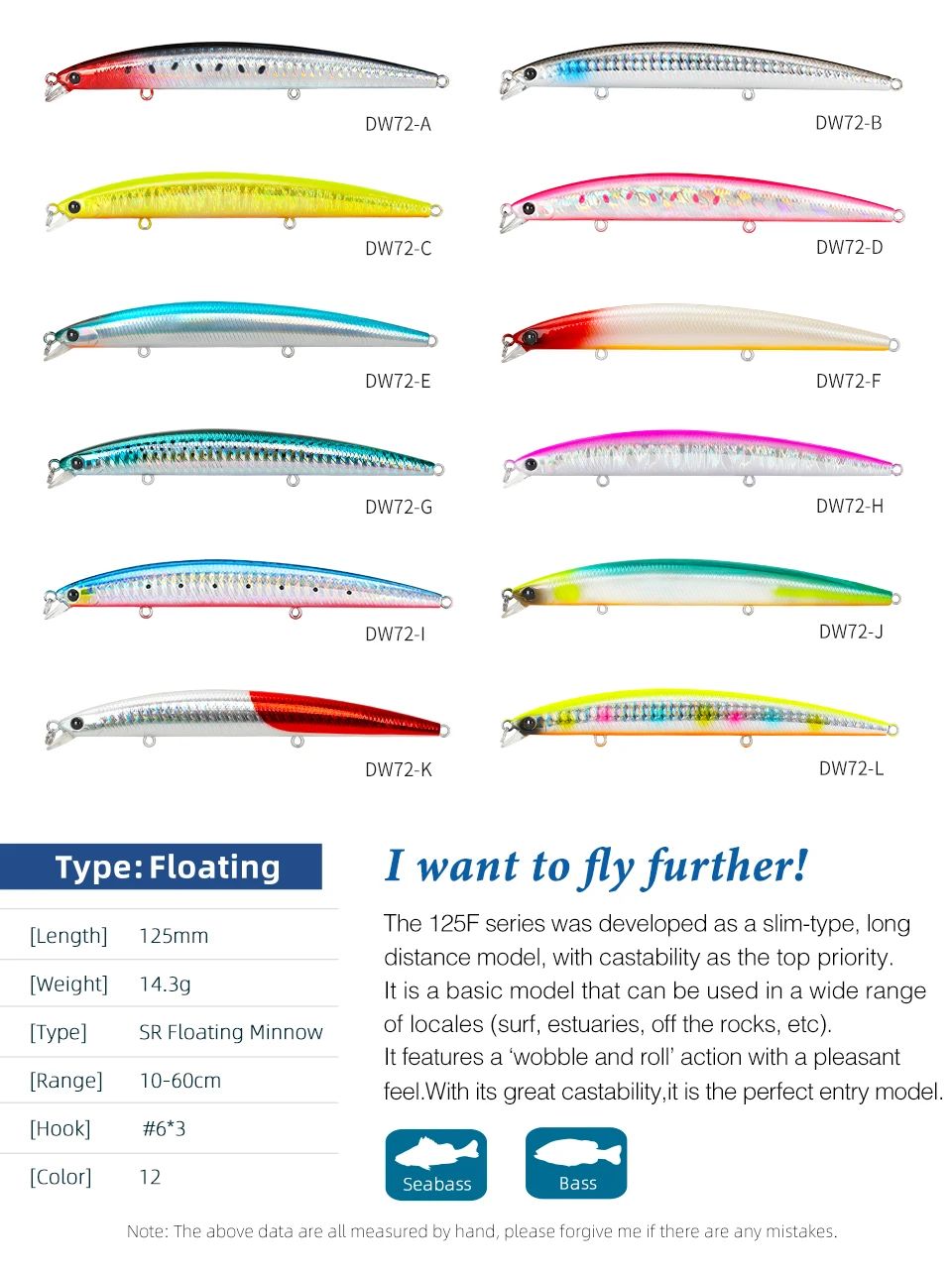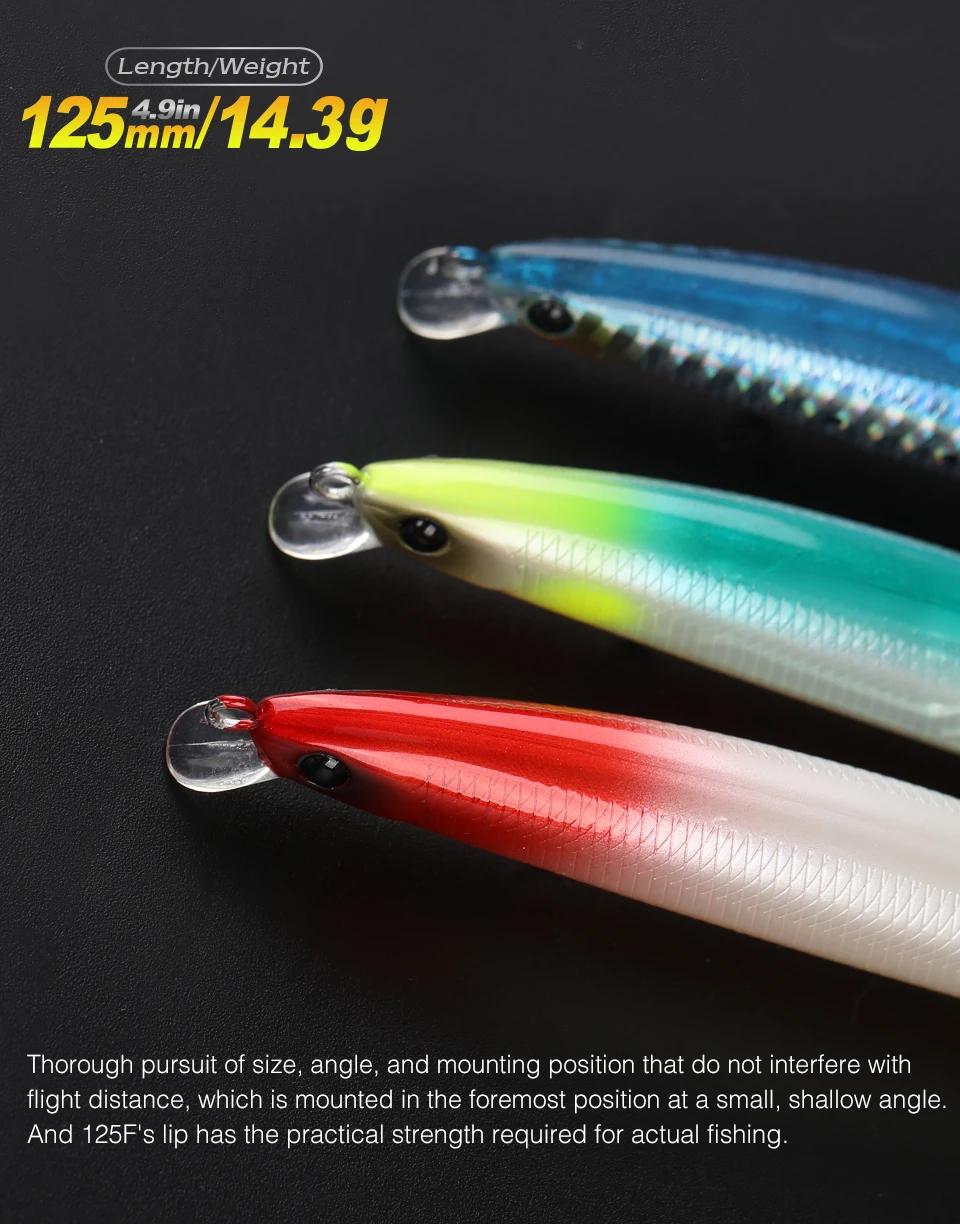 TSURINOYA 125F Ultra Long Casting Slim Floating Minnow DW72 125mm 14,3G 10-60cm Señuelo de Pesca de Mar de rango poco profundo Cebos duros grandes