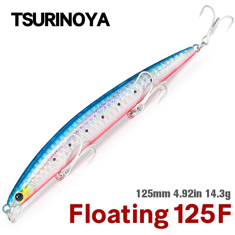 TSURINOYA 125F Ultra Long Casting Slim Floating Minnow DW72 125mm 14,3G 10-60cm Señuelo de Pesca de Mar de rango poco profundo Cebos duros grandes