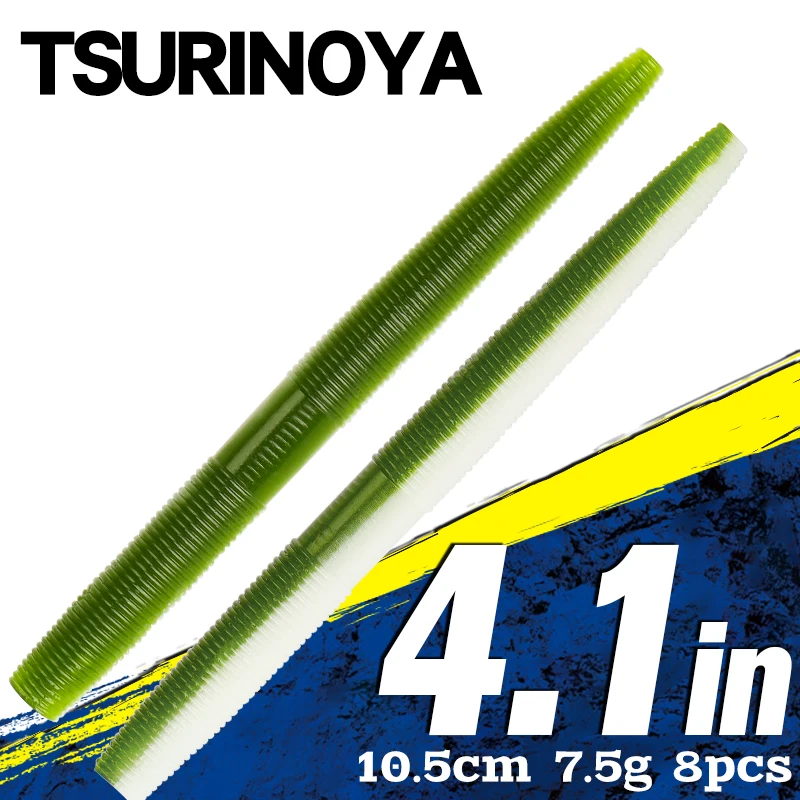 Señuelo de pesca de palo suave TSURINOYA 4.13in 5.12in 7,5g 9g cebo de natación Lucio bajo gusano blando Artificial sin aparejo de bajada 8 piezas