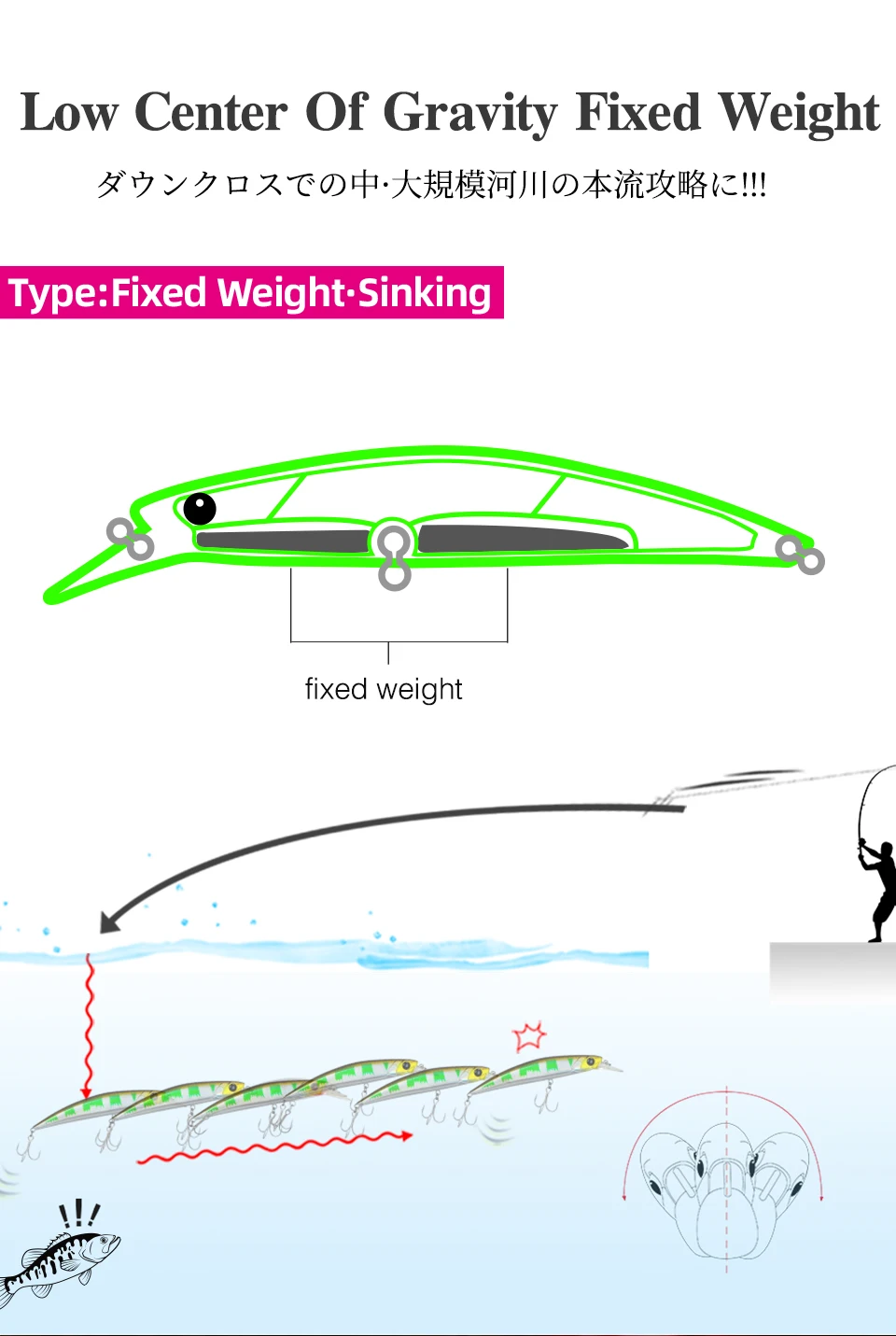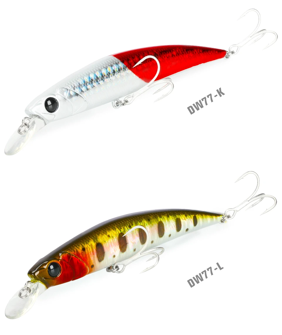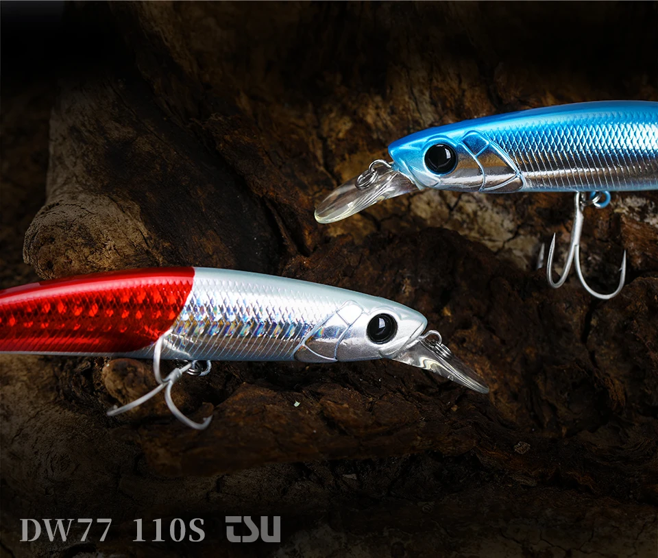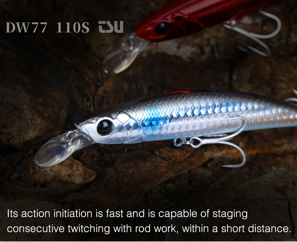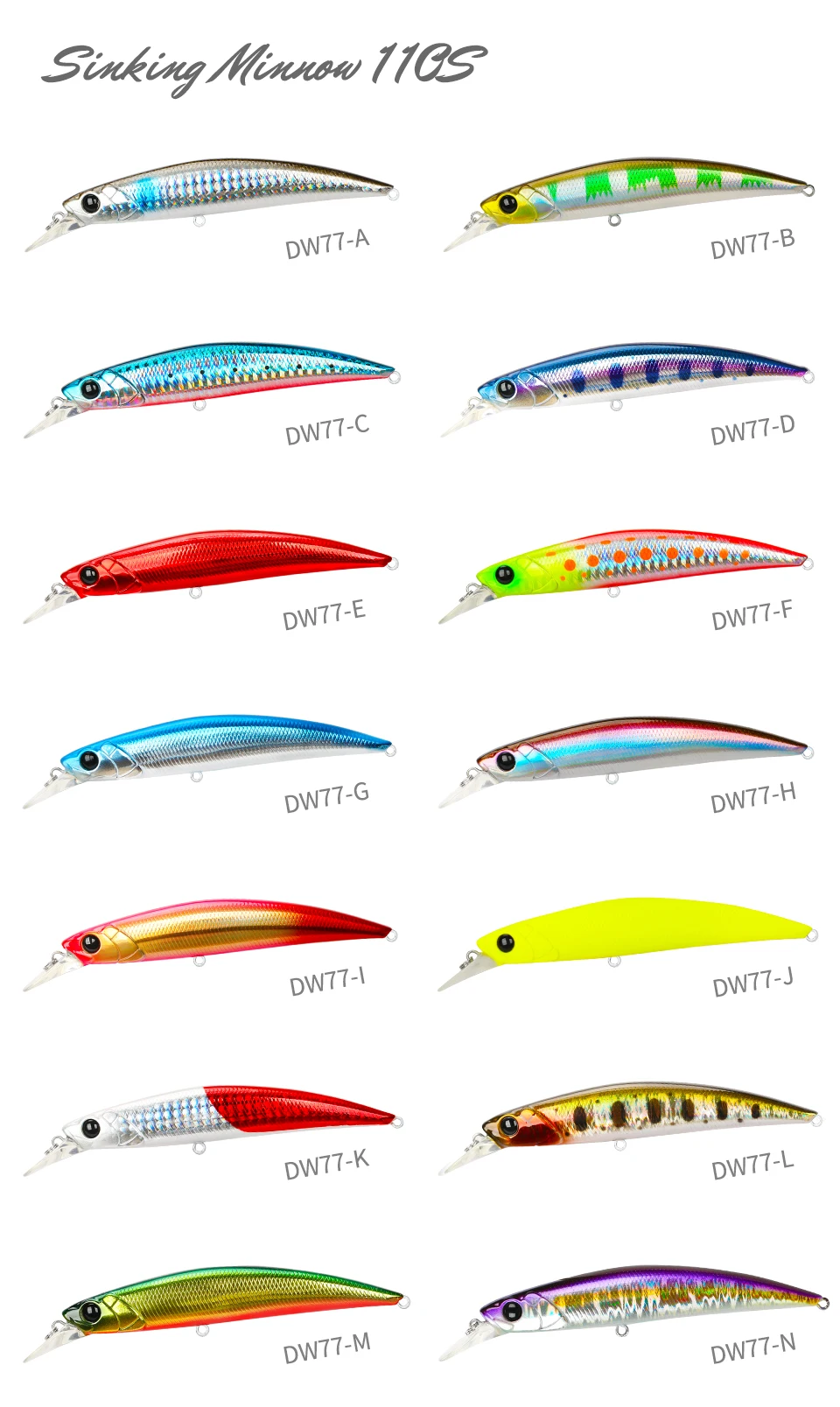 TSURINOYA-señuelo de Pesca para pececillos, cebo duro para agua salada y dulce, 14 piezas, DW77, 110mm, 22g, hundimiento de 0,8-1,2 m