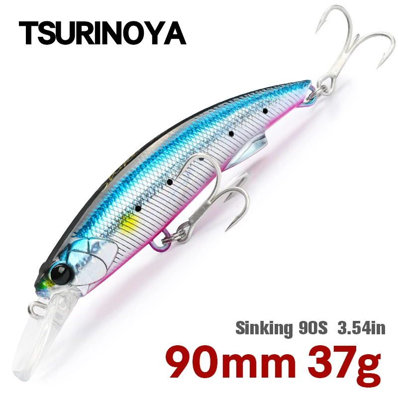 TSURINOYA-Señuelo duro de pesca de pececillo pesado que se hunde, cebo duro artificial para agua salada, señuelo de alta resistencia de lubina, 90mm, 37g