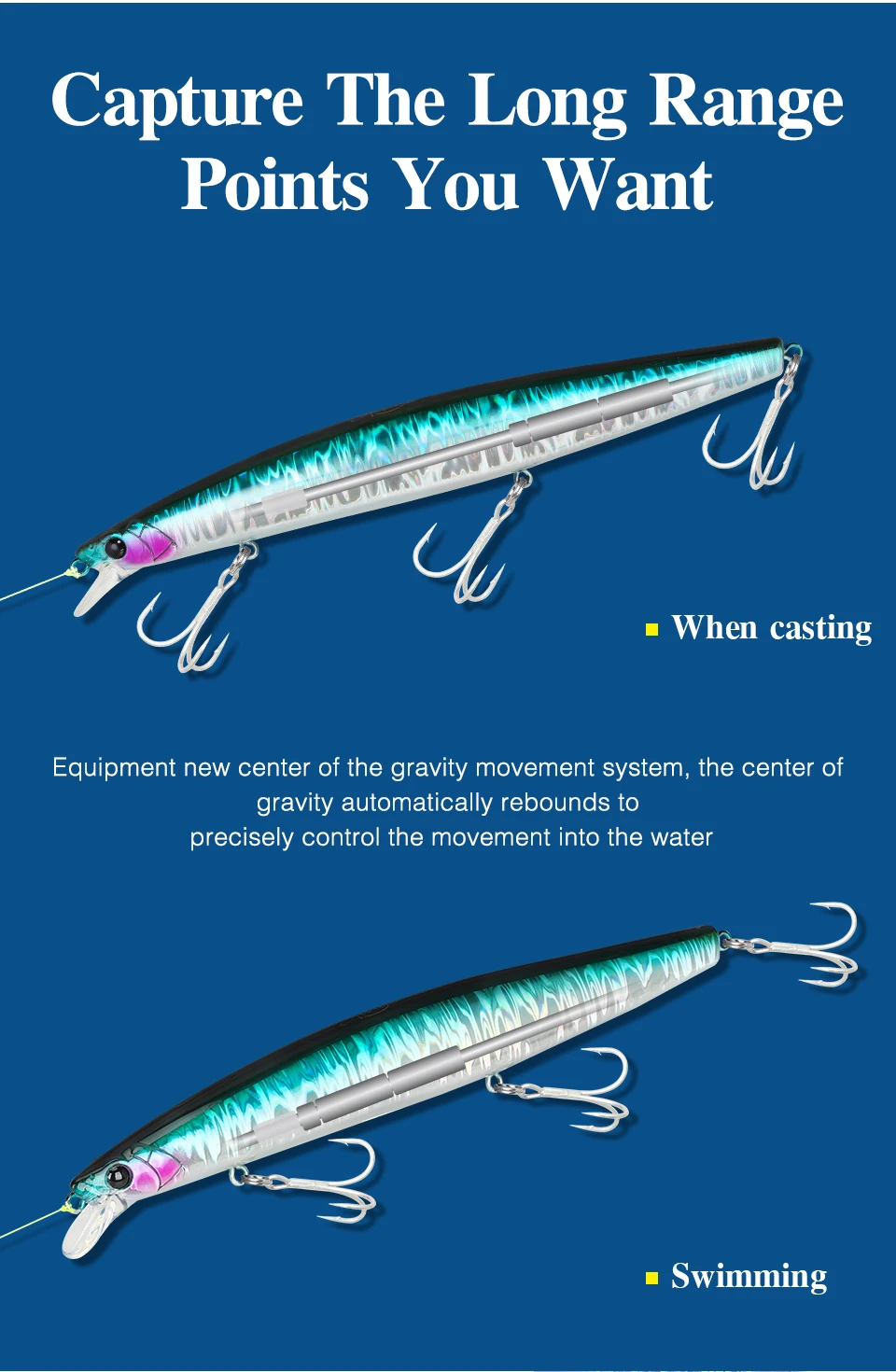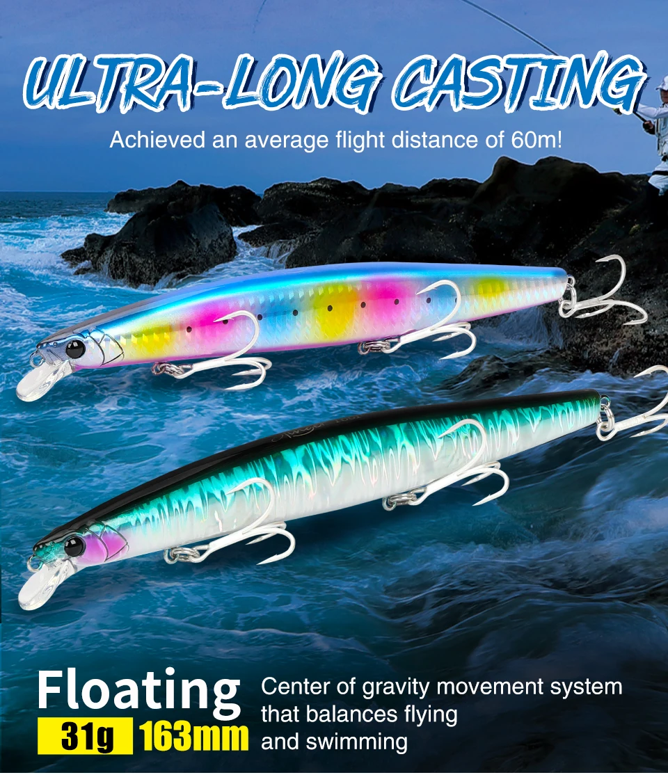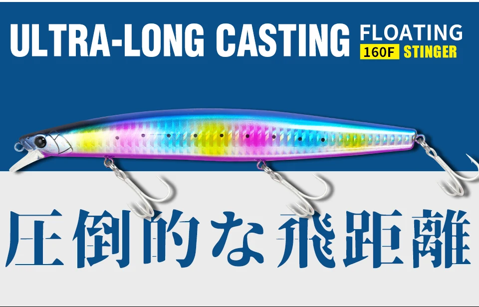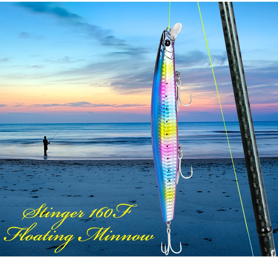 TSURINOYA Ultra-Largo de fundición Minnow flotante señuelo de pesca STINGER 160F 63mm 31g de Pesca de Mar Artificial cebo duro cebos marinos