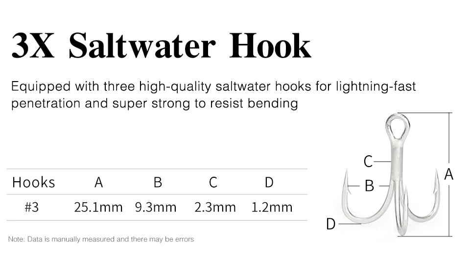 4. 3X anzuelos de agua salada, buen rendimiento y anticorrosión, no le da a los peces ninguna oportunidad de escape