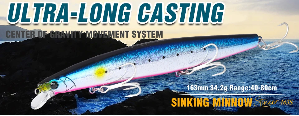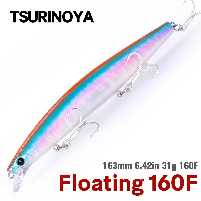 TSURINOYA Ultra-Largo de fundición Minnow flotante señuelo de pesca STINGER 160F 63mm 31g de Pesca de Mar Artificial cebo duro cebos marinos