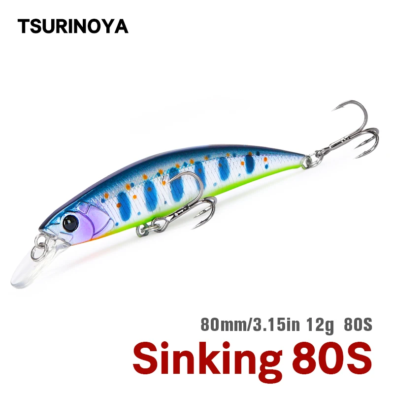 Señuelo de pesca de pececillo TSURINOYA 80S 12g hundible DW96 80mm gran trucha Lucio Rockfish cebo duro Jerkbait agua dulce agua salada Wobblers