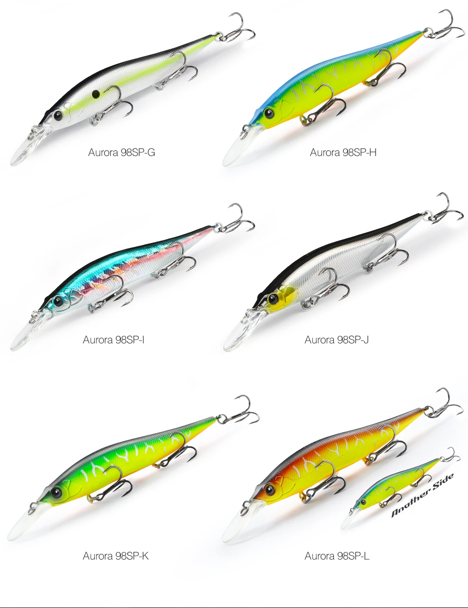 TSURINOYA 98SP suspensión señuelo de pesca Minnow AURORA 98mm 10g Max 2,2 m peso de tungsteno largo lanzamiento Lucio Jerkbait cebo duro