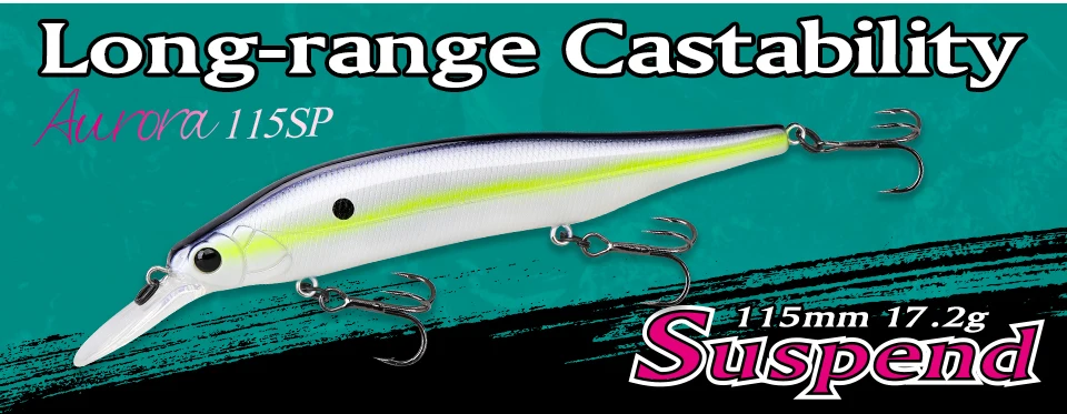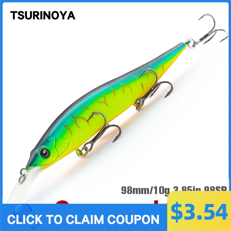 TSURINOYA 98SP suspensión señuelo de pesca Minnow AURORA 98mm 10g Max 2,2 m peso de tungsteno largo lanzamiento Lucio Jerkbait cebo duro