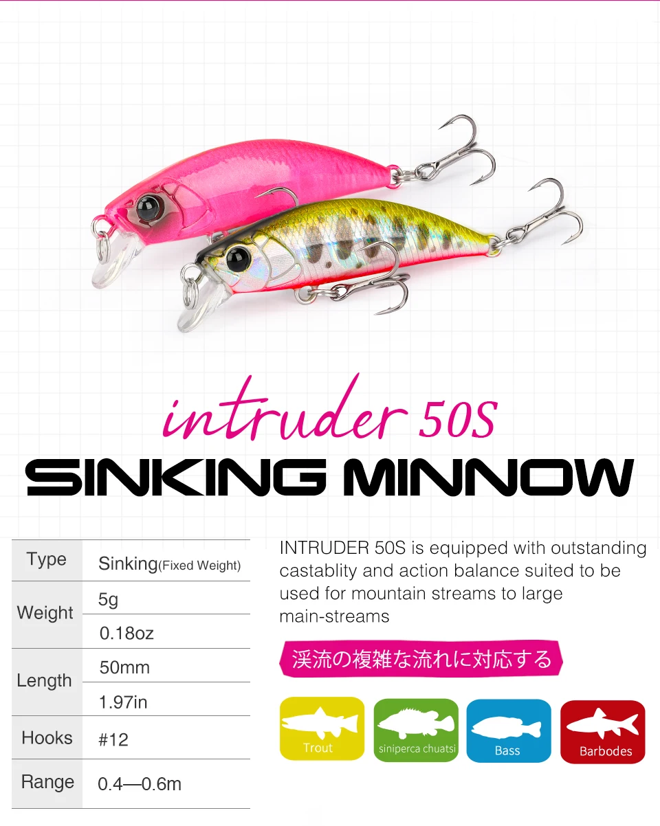 5. El cuerpo plano pero pesado crea una respuesta de acción fuerte para el pesaje pesado que se hunde minnow, "intruso 50S".