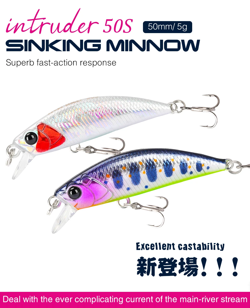 TSURINOYA 50S nuevo COLOR 5cm 5g hundimiento Minnow señuelo de pesca intrusos trucha Artificial Jerkbait cebo duro Lucio Wobbler Mini Crankbait