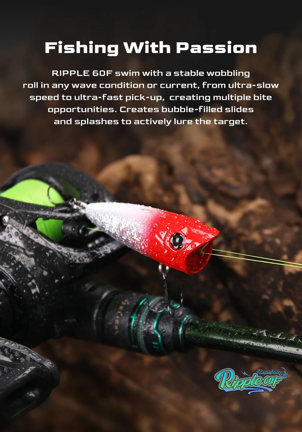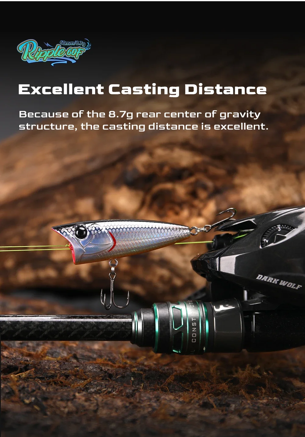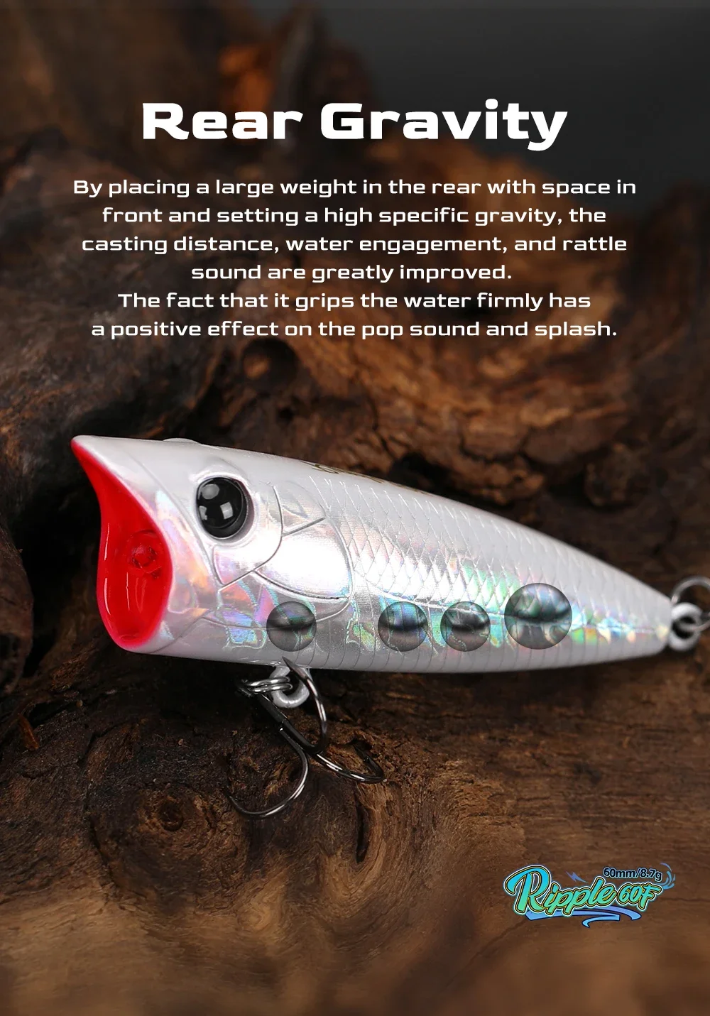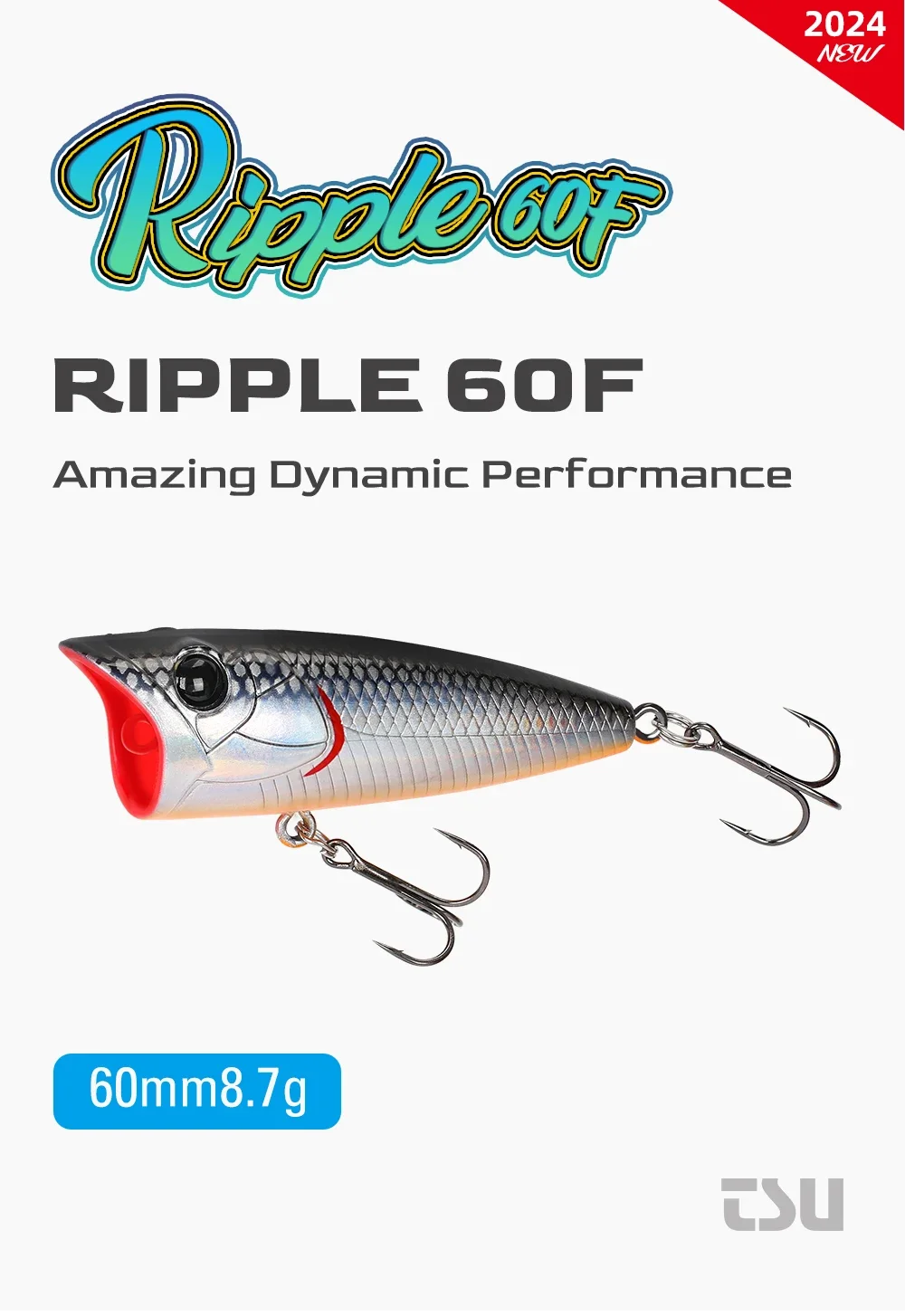 TSURINOYA-señuelo de pesca Popper 60F Topwater, Wobbler flotante, 60mm, 8,7g, ondulación, cebo duro Artificial para modelo de superficie de lubina