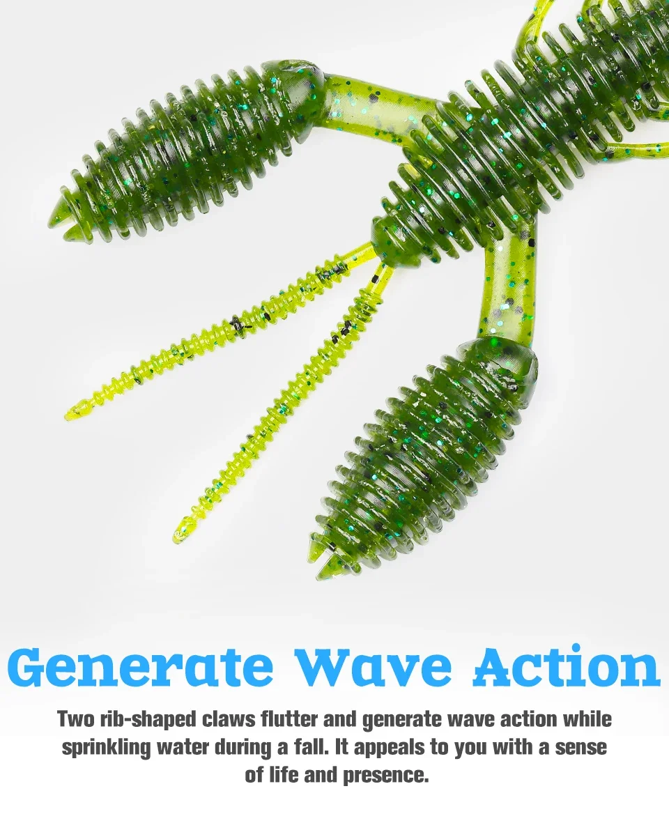 Dos garras en forma de costilla revolotean y generan acción de ola mientras rocian agua durante una caída. Te atrae con un sentido de vida y presencia.