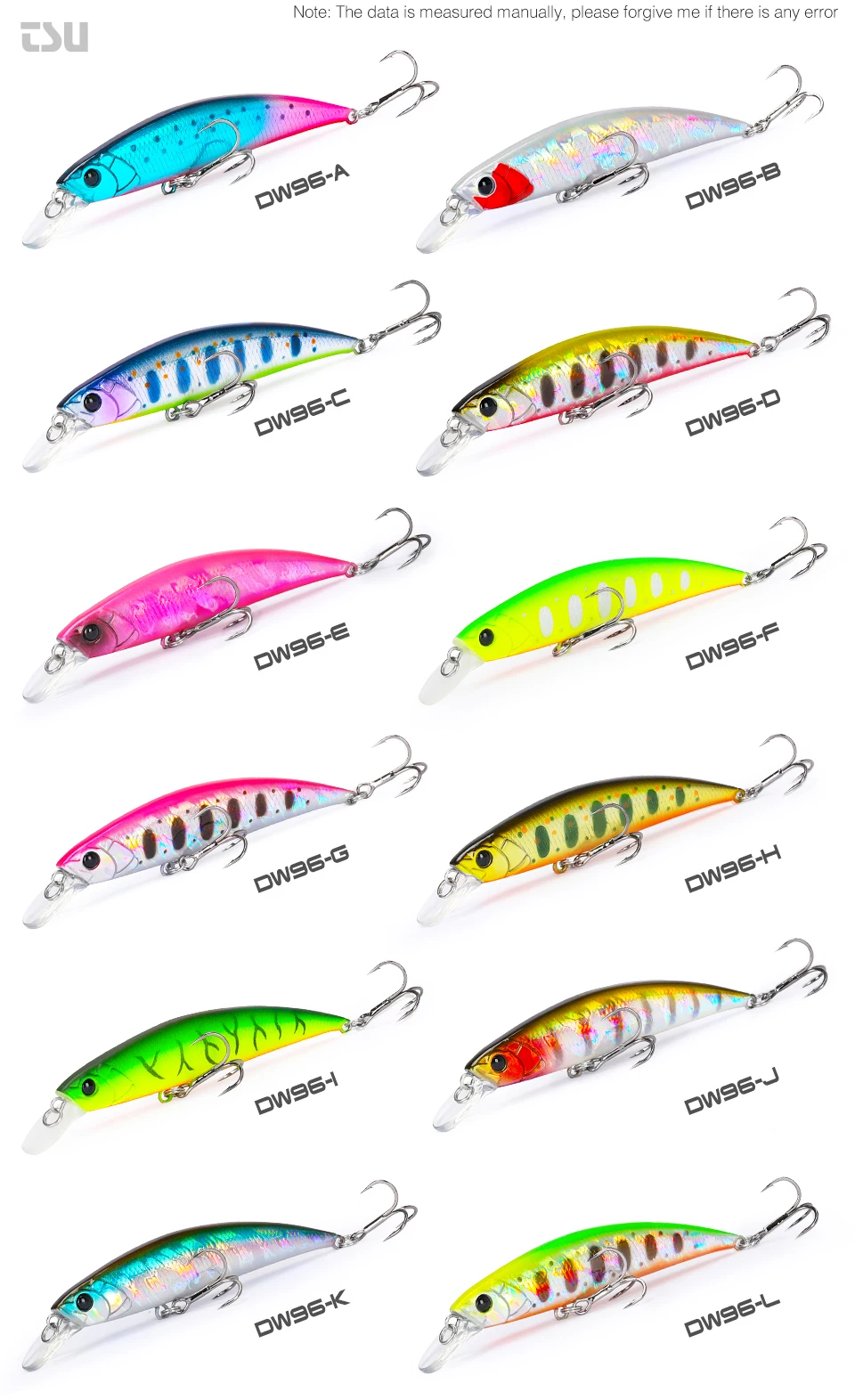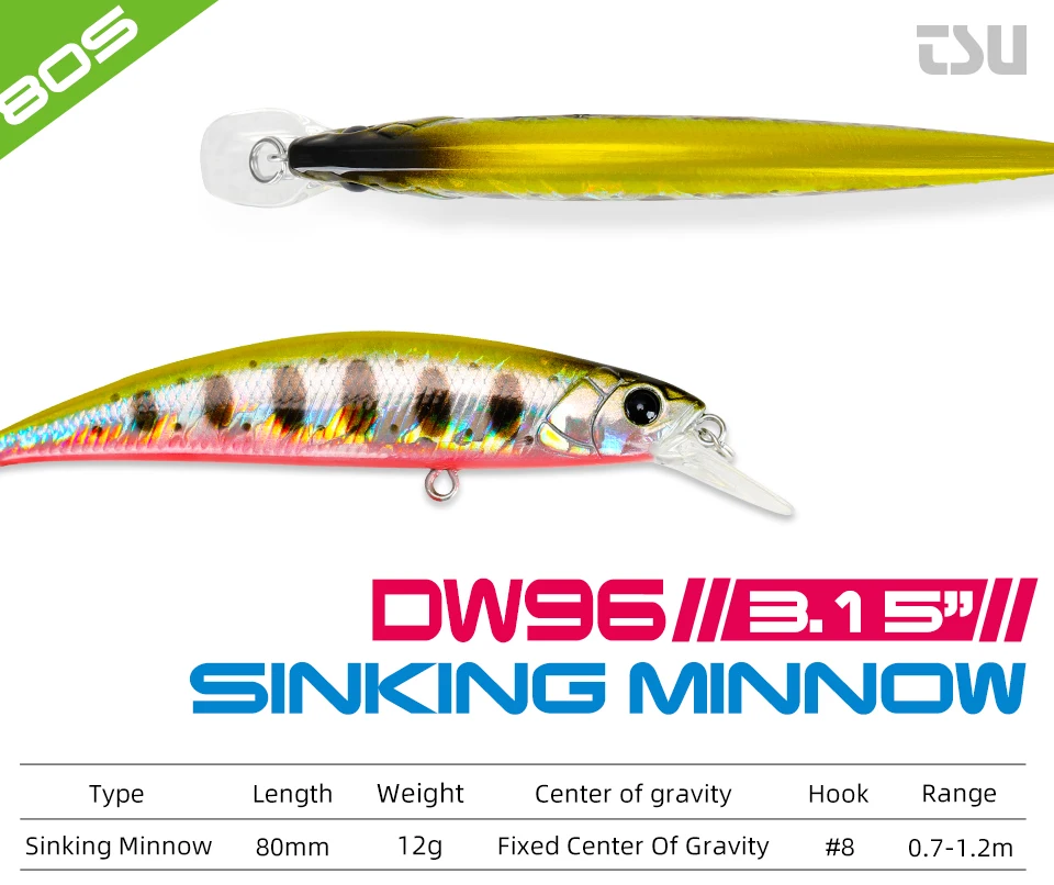 TSURINOYA-señuelo de pesca que se hunde Minnow 80S, 12g, DW96, 8cm, multicolor, Rockfish Jerkbait, cebo duro, Wobbler de agua dulce y salada