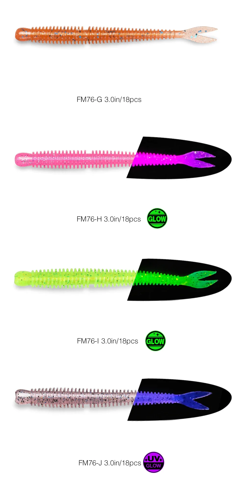 -El FLAME es un cuerpo anillado, un cebo fino de cola de aleta bifurcada. El FLAME es un gusano súper flotante con aroma natural a calamar. El FLAME es extremadamente versátil, Texas Rig, drop shot, jig head, wacky y jig trailer son formas efectivas de pescar este cebo. En la sección central del cuerpo, hay una sección sin anillo que indica la mejor posición para la plataforma extravagante.