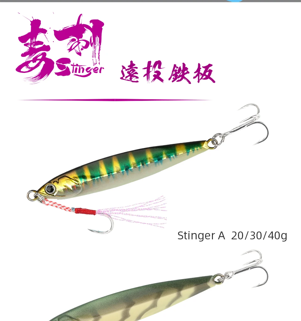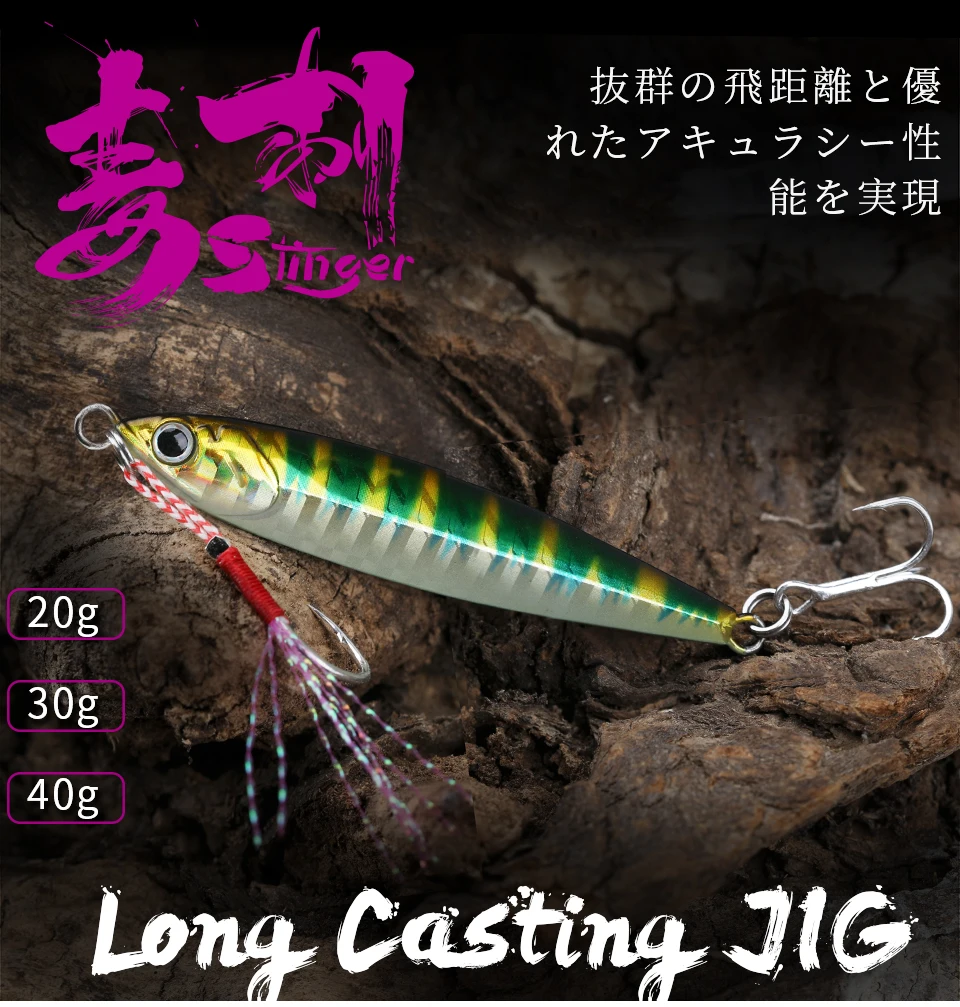 TSURINOYA Señuelo de Pesca STINGER 20g/30g/40g Señuelo JIGGING de Metal en la costa Cuchara de fundición larga Jigs Pesca de agua salada Isca Jig Señuelos