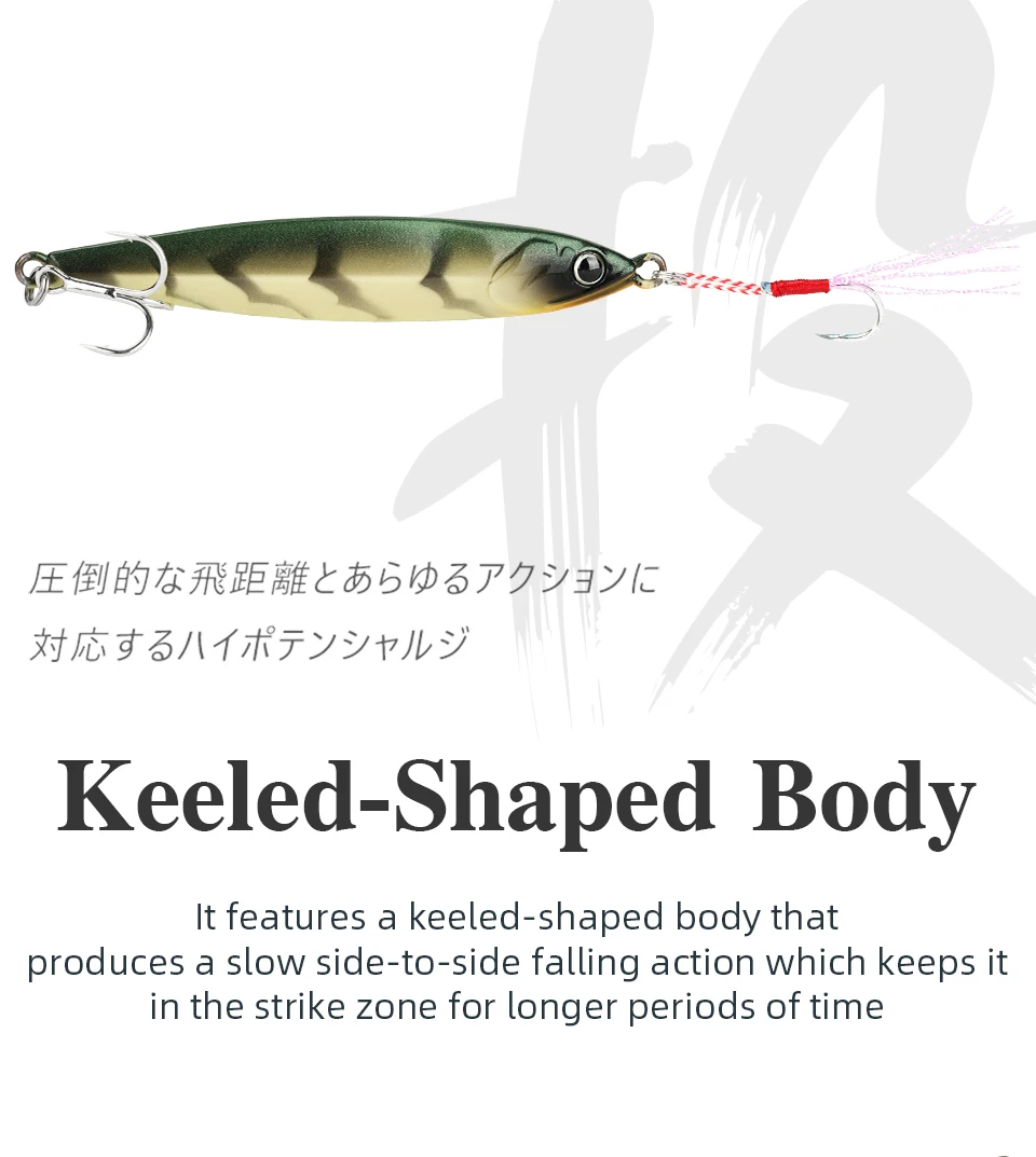 1. El señuelo está construido con una figura en forma de sauce diseñada para producir una capacidad superior de lanzamiento a larga distancia.