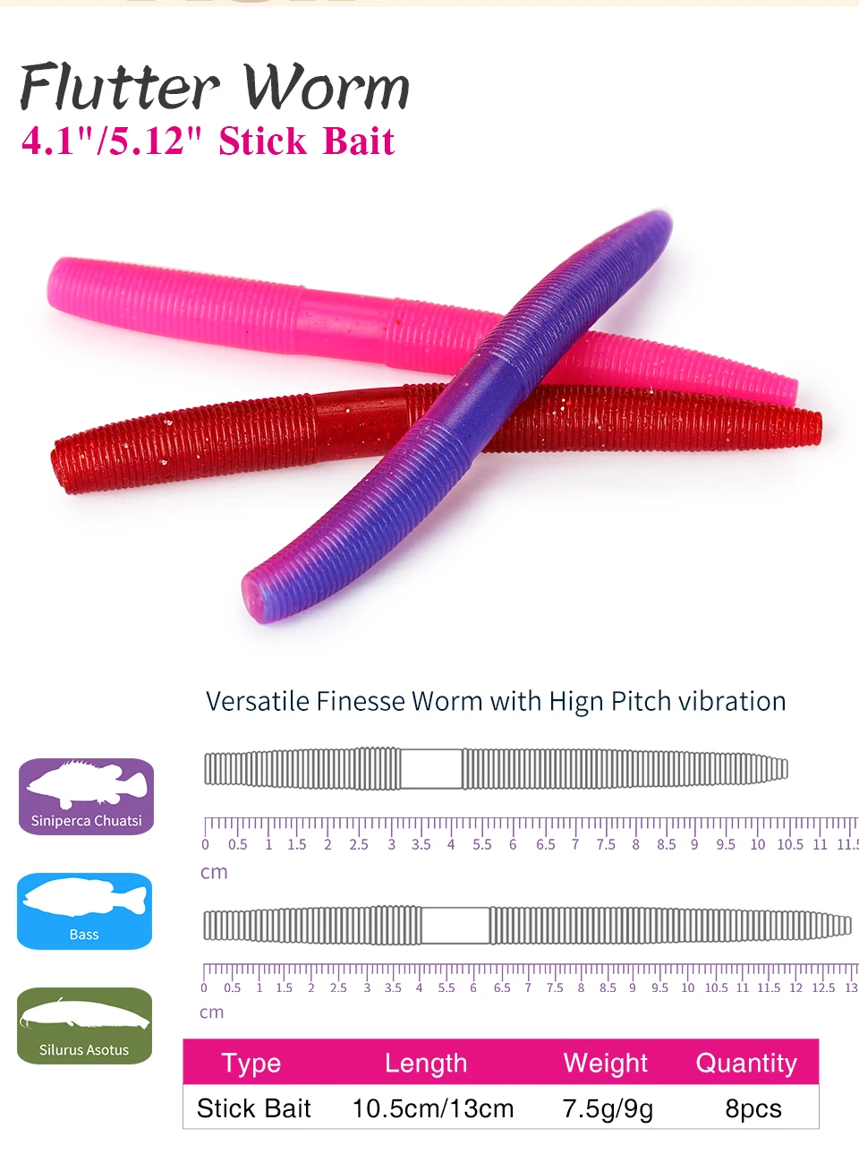 1. Poured with a super high salt content, the Stick baits produces an perfect rate of fall and its super soft texture makes it feel extremely natural to the fish when they bite;