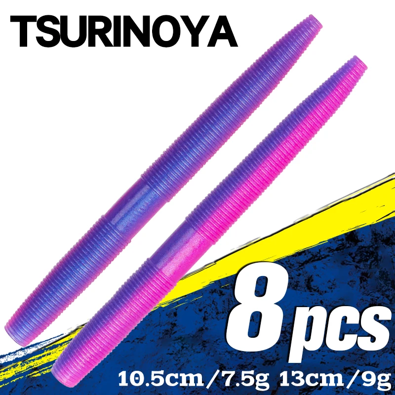 TSURINOYA Soft Fishing Lure 4.13in 5.12in Stick Baits 7.5g 9g 8pcs Artificial Silionce Soft Worm Bass Pike No Sinker Fishing Rig