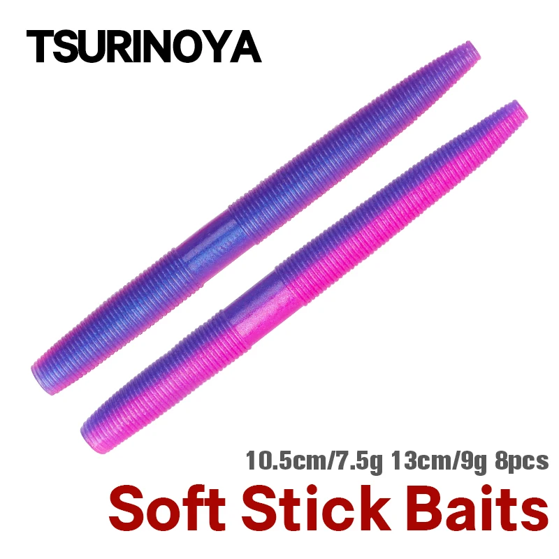 Señuelo de pesca suave TSURINOYA, cebos de varilla de 4.13in 5.12in, 8 piezas de siliuna Artificial, gusano blando de 7,5g 9g, Lucio de Lucio sin plomada, aparejo de pesca.