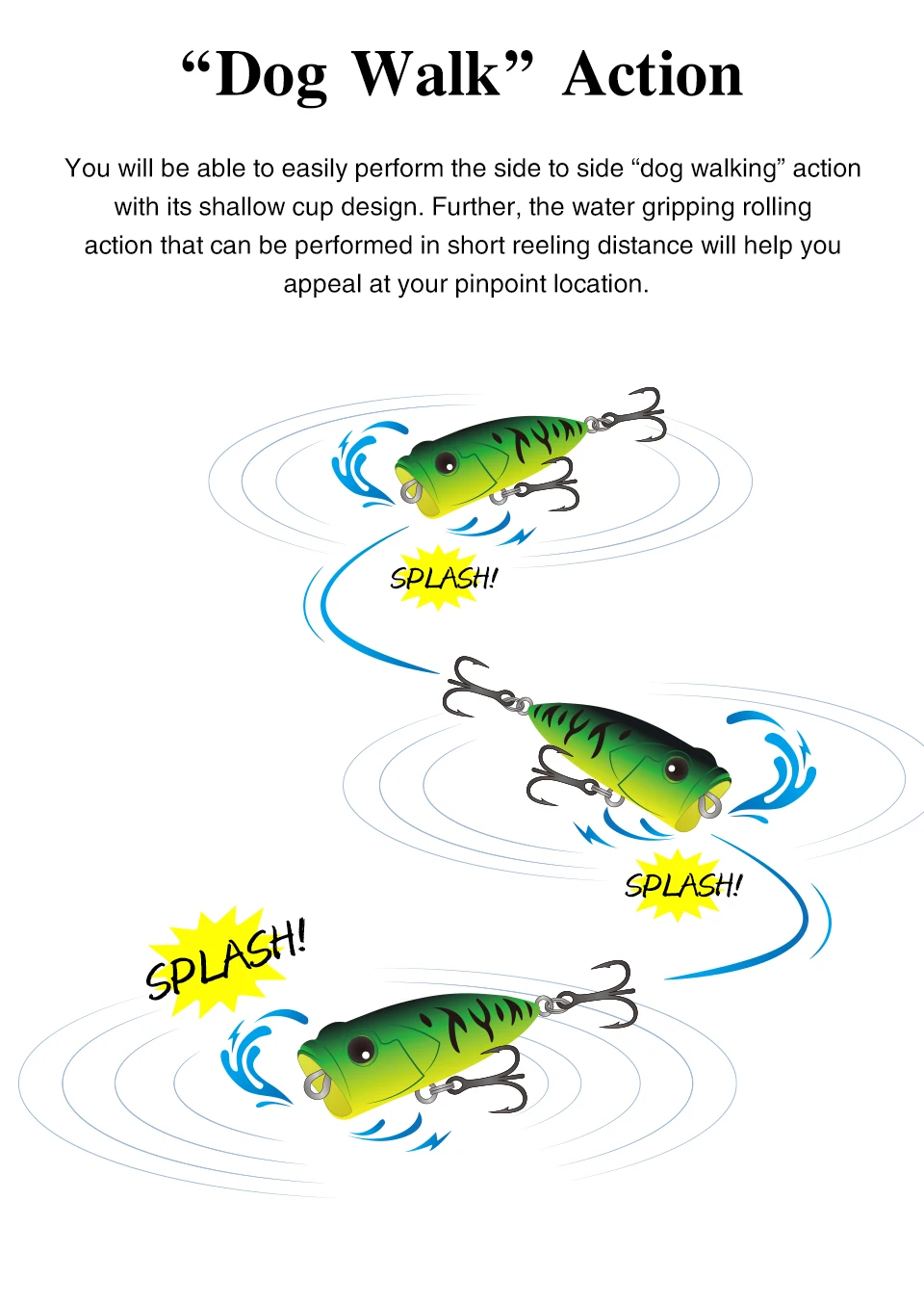 Mientras produce el sonido de las corrientes de agua animadas, el señuelo puede nadar para formar burbujas y rociar lo que atraerá la dorada negra y la lubina.