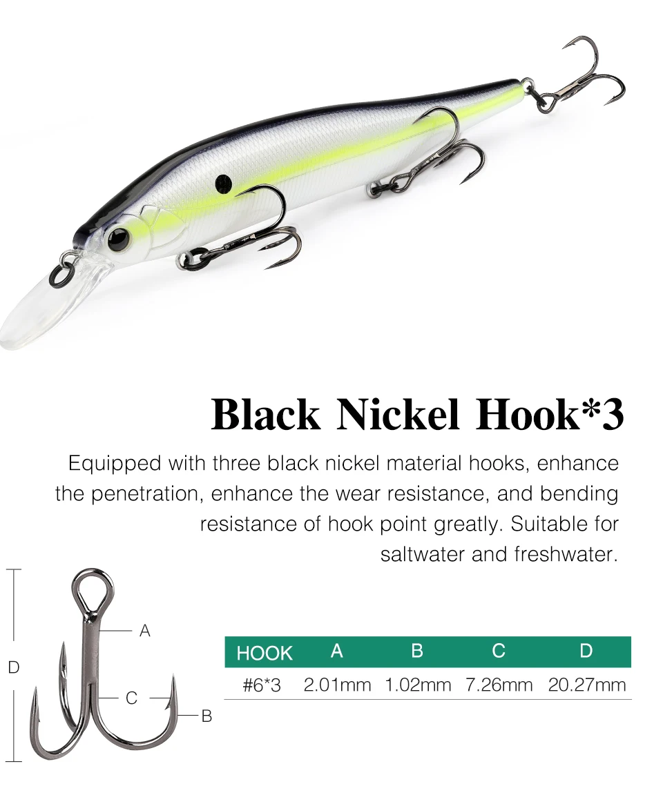 TSURINOYA 115mm 17,2G 115SP suspensión Jerkbait Sistema de peso de tungsteno AURORA Minnow señuelo de pesca Lucio bajo cebos duros aparejos