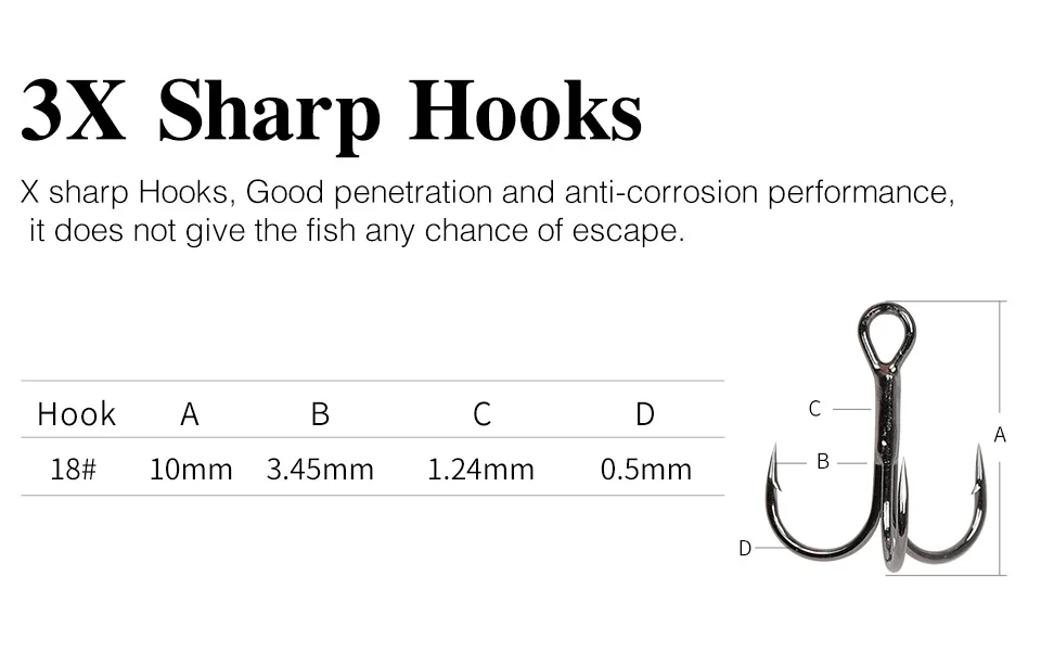 Por supuesto, el anzuelo es un anzuelo triple.# 14 que cuenta con un increíble poder de penetración, por lo que puedes conectarlo al enganche sin perderte un picor corto.Ideal para peces migratorios pequeños como gallos y caballa de caballo, así como sphyraenidae.