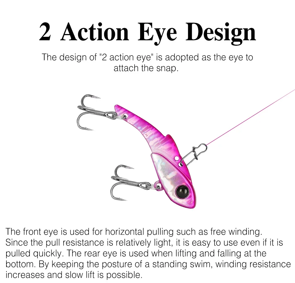 El diseño de "ojo de acción 2" se adopta como ojo para colocar el broche.El ojo frontal se utiliza para tirones horizontales, como el bobinado libre.Dado que la resistencia a la tracción es relativamente liviana, es fácil de usar incluso si se tira rápidamente.El ojo trasero se utiliza para levantar y caer en la parte inferior.Al mantener la postura de un baño de pie, aumenta la resistencia al bobinado y es posible un levantamiento lento.Además, el ojo trasero se coloca en el interior para que el gancho no gire la parte posterior, lo que reduce la tensión del enredo del hilo.