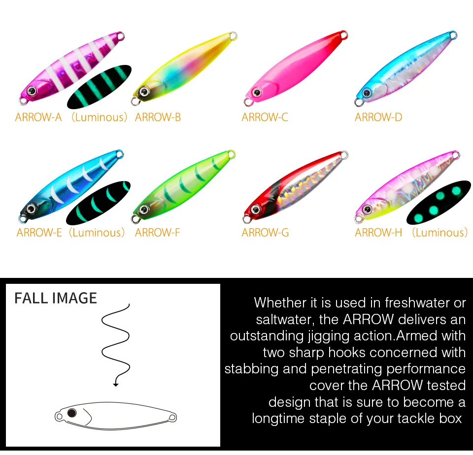 Señuelo de plantilla de Metal TSURINOYA, Flecha de hundimiento rápido luminoso, señuelo de pesca de orilla, cebo de Metal Artificial 7g 14g 18g, señuelo de arrastre de barco.