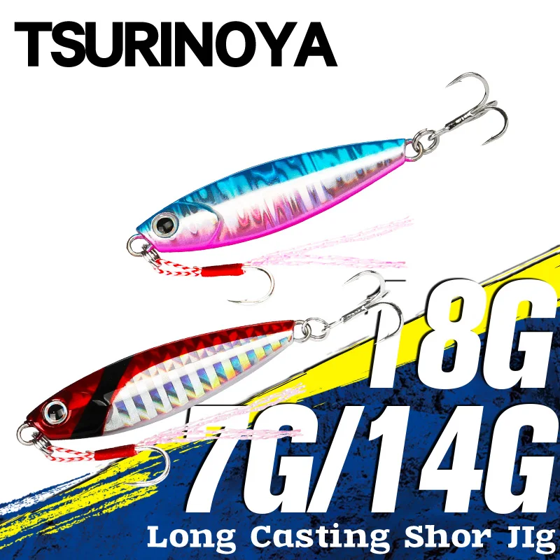 Señuelo de plantilla de Metal TSURINOYA, Flecha de hundimiento rápido luminoso, señuelo de pesca de orilla, cebo de Metal Artificial 7g 14g 18g, señuelo de arrastre de barco.