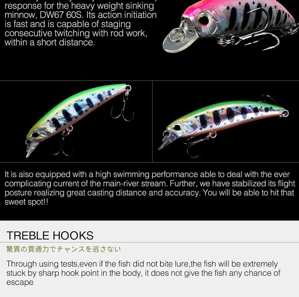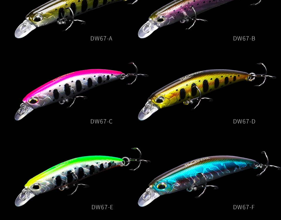 TSURINOYA Nuevos Señuelos de Pesca Hundimiento Minnow 60S DW67 60mm 6.1g Bass Pike Mini Minnow Manivela Wobbler Modelo Manivela Cebran cebos duros Modelo