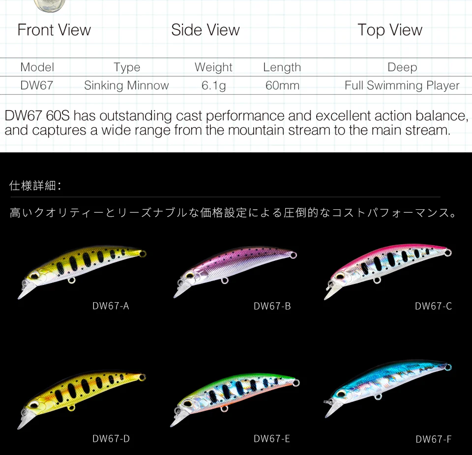 1. Nombre: TSURINOYA hundimiento Minnow DW67